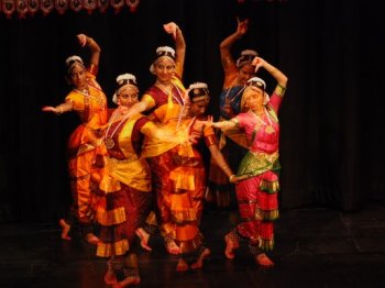 The Tamil Varnam in Ragam Natakurinji, praising Lord Shiva was again a great choreography combining rhythm and melody. The dancers displayed beautiful synchronization in their adavus, changing positions and in covering stage space. Srinidhi Raghavan's technical brilliance and stage presence had me transfixed. Her part of the varnam enacting Shiva and Parvati’s dice game was dramatic in its portrayal. The contrast of Parvati's feminine grace and the description of Shiva, bold and strong were remarkable and done with great command. In the next item too, Yashoda's love for little Krishna was superbly enacted by Srinidhi in 'Chinna Chinna Padam' where she showed her mastery of abhinaya. In 'Asaindaadum Mayil,' a Padam in praise of Lord Krishna, Janani Harrichandiran showed agility and precision in describing Krishna's omnipresence while Vinita Venkatesh showed herself as accomplished in conveying the divine union between Radha and Krishna in her piece 'Kuru Yadu Nandana,' an Ashtapadi by Jayadeva. The concluding piece, a Thillana in Brindavan Saranga raga, was an absolute delight. The fruit of the hours of hard work and dedication put in by the dancers were in full evidence in their effortless performance of a very difficult combination of adavus and sculptured poses woven into delightful patterns throughout the piece. It was an awe-inspiring performance indeed. 'Nivedanam'