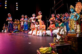 Padma says she owes it to her mother Mrs. Santhanam for all the help with the selection of the songs for the production. She says, "Music for the entire production was the most important aspect of the show and great attention went from the selection of the songs to their recording with the help of musicians in Sydney." Whilst there were some familiar songs like "Adharam Madhuram Vadanam Madhuram" from Madhurashtakam, compositions of composers such as Narayanatheerthar, Purandara Dasar, verses from Thiruppavai, Periasamy Thooran and of course Ashtapadi were chosen to connect lyrics to the story, naadam to bhaavam, rhythm to steps. With a smile,