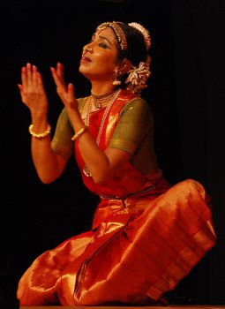 The fall of the seed on the ground and its being nurtured into a large tree were portrayed imaginatively. The cavorting of the lovers under the tree was tastefully done. The following tragic story of the fallen soldier in the battlefield had pathos. The emoting over the dead body was restrained and in the natya dharmi mode. Here she introduced the flashback technique. After every instalment of grieving over the body she reproduced scenes from his early life. It took the place of Varnam, the flashback episodes constituting sanchari bhavas. It provided opportunities for demonstrating diferent rasas. It was followed by a viruttam that was an extract from Kantimathi Amman Pillaittamil, which she had learnt from T Muktha. The stayibhava of both vatsalya and bhakti sringara was communicated well. It was like a Padam. The cajoling of the child reminded one of the other famous song, with a similar rasa, viz., "Krishna Nee Begane Baro." The evening ended with an item in Abhogi that had the markings of a tillana with their charactristic head and eye movements. It was a swara-based composition with a charanam taken from a verse but without jatis. The performance had the stamp of the Pandanallur bani. This school is known for deep-seated positions. Araimandis were in abundance. The tempo was brisk. She pranced around the large stage with joie de vivre spreading cheer. The adavus were marked by interesting combinations characteristic of the school. The utplavanas were simple without any flamboyance. The lines in holding the hand were clean and clear. However, some of the movements of the torso reminded one of Odissi but they neatly meshed into the Bhartanatyam format. (She had undergone formal training in Odissi under Kelucharan Mohapatra.) The footwork was flawless and tala and kalapramana were adhered to strictly. The selection of ragas was appropriate. For example, the grieving scene was in Subhapantuvarali and the amorous one in Khamas. Aharya was simple and attractive. The colour of the sari looked green under the lights. It was in consonance with the theme being related to nature and Mother Earth. In the course