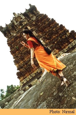 If anything, it is an honor for Wesleyan to host Ms. Ratnam. As the program notes, she is not only an accomplished dancer - she is also a choreographer, a classically trained singer, and a scholar of theater and women's studies who has performed, studied and taught worldwide. "She has reconfigured the traditional format of Bharatanatyam," noted Artist in Residence Hari Krishnan of the Dance Department. He delivered the introduction.