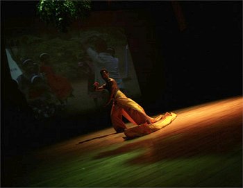 The evening continued in to the opening night dinner hosted at Tangerine 2 where all the artistes of the festival mingled and bonded. The Navtej Johar magic continued into the next day with the 'Yoga and Spirituality' workshop session at the Max Mueller Bhavan with Johar amazed to see a mass of more than 55 enthusiasts waiting for him. This group comprised of some of the city’s renowned and seniors dancers, university students, young dancers and of course media. In a session that combined awareness and understanding of the psyche of an artiste to the yoga and breathing techniques that would stabilize the core of the body, Navtej also answered specific questions of the group that related to health, strength and flexibility of the body. It was inspiring to see many renowned dancers like Chetna Jalan and Sruti Bandhopadhyay leaving the stage to the young dancers and trying out the yoga moves on the aisle. In the evening of September 11, the scene shifted to the historic and palatial Star Theatre in North Kolkata, where quite a surprise was sprung on the group of arts enthusiasts thronging the gates for the evening performance. In a lobby that was creatively done up with drapes, ghungroos, handicraft items, banners and plants, the expectant audience were greeted by a group of talented Sapphire members who indulged in a site-specific exploration. Some dancers pirouetted and moved on the lobby floors while others improvised in duos on the staircases. Inside the auditorium, the audience was taken aback by another unique experience. Raka Maitra who has been exploring traditional dance in a contemporary perspective for many years now in a diaspora space based out of Singapore, presented a unique collaboration. Graphic artiste Chan Man Loon famous for his work for Hollywood created a graphic space on stage, a lit rectangle within which Raka enacted a new dance language questioning notions and essences of a traditional dance form like Odissi. The form is distilled and refined, infused with the control of Chhau. Typicalities are broken to reveal new pathways of experimentation. The piece was aptly termed Boundaries. Boundaries that inspire dreams, dreams sustain us, give us hope. While the collaboration was special in its creativity, Raka being ably supported by Man Loon's innovative graphics and Philip Tan's experimental strains, a proscenium theatre is not probably the best space for this kind of site-specific work. From a show