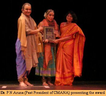 Naatyaachaarya V P Dhananjayan and Shanta Dhananjayan along with senior disciple Padmarani Rasiah gave a soul stirring 'Bhakti Maaragam' performance for a full complement of rasikas at the Forum Theatre in Metuchen, New Jersey on 2nd November 2008 that brought tears to the eyes of the audience who gave a five minutes standing ovation. The audience also pleaded with the Dhananjayans to return, calling this the "last" in the first farewell tour! The Dhanajayans obliged by performing two more items requested by the connoisseurs of CMANA members - The Pregnant Deer and Varugalaamo Ayya. |