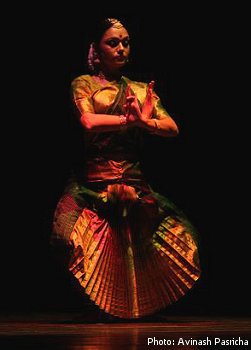 The Jatis of this varnam were by Karaikudi Shivakumar and Rama matched the immaculate jatis with brilliance. Another high point was Rama's beautiful postures at various levels of the jatis and holding her postures comfortably. She was perfect in her nritya and nritta. The evening concluded with a Telugu bhajan "Momunchepura" set to Behag raga and Roopaka talam. This bhajan about Yashoda and Krishna consisted of the 3 stages when Yashoda confronted little Krishna and how she was mesmerized with his response. She simply called him "the butter thief" on one occasion. On the complaints of the gopikas that he had stolen their butter, she confronts him and is awestruck with the innocence in his eyes that he hadn't done that. Finally, when the children complain that Krishna has eaten mud, she is humbled to see the whole "Bramhanda" in his mouth, thereby realizing that he is the omnipotent lord. Rama danced the varied characters, swiftly transforming from Krishna who had stolen the butter into Yashoda who is admonishing him. The episodes of love and play between the mother and child were very well depicted. Also the final moment of realization by Yashoda about Lord Krishna was well presented. Rama Vaidyanathan was well supported by a brilliant orchestra: K Shivakumar – nattuvangam, Valsarajan Niliyath – vocal, G S Rajan – flute, Sumod Sreedharan – mridangam. Performing