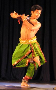 The evening program featured an 'athletic' Bharatanatyam recital by Mavin Khoo, with his guru Adyar K Lakshman conducting the recital. He presented an item on Muthuswamy Dikshitar's Mahishasuramardhini, followed by "Vanajakshi vaa nee" and the Jayadeva ashtapadi "Sakhi he keshi." He completed with a ragamalika thillana. Traditional Bharatanatyam with meditative abhinaya and slow movements was peppered with ballet twirls and leaps and the super speed jathi movements were mind boggling. He was accompanied by Baba Prasad on mridangam, Pushkala Gopal on vocal and Vinod on violin. The second