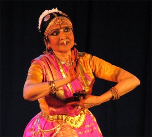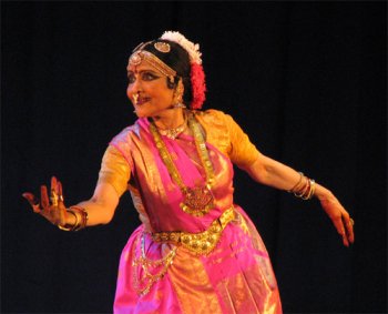 The first performance on January 8 was by veteran dancer Vyjayanthimala Bali. The hall was jam packed. Clad in a pleasant pink sari, she presented stories about the birth of Krishna in 'Ragam-Taanam-Pallavi' format. The first part of the story was set to a raga alapana in a garland of ragas and narrated the episode of Sri Suka telling King Parikshit of the auspicious omens. The taanam "Tham adbhutam baalakam" in ragam Naatai was about the birth of the child Krishna, his being carried to Gokulam and the Kamsa episode. Vasudeva saw the lotus-eyed child, who had the color of the cloud, carrying the conch (sangu) and the disc (chakram) in his four arms, the mace (gadha), marked by srivatsa on his chest and wearing kousthubhamani and he was described as adhbutha baalaka (wonderful child). The pallavi "godhuli dhusarita komala kuntalagram" in Karaharapriya and kanda triputa talam, was set in traditional varnam pattern of Bharatanatyam; the pallavi and varnam were juxtaposed and pallavi swaras were set to adavu korvais. This item was about Krishna as a cowherd, Krishna playing with the gopis and so on. His curly locks of dark hair become soiled with the dust raised by the hoofs of the wandering cows as he moves them from one grazing area to the other of Brindavan, the dust settling on the tips of his beautiful tresses. The program ended with a mangala slokam set to ragam Surati, and signified the merging of the jeevatma and paramatma. With sustained energy, Vyjayanthimala executed movements that belied her age, and her inspired presentation earned her a standing ovation. The accompanying artistes were Adyar Balu (mridangam), Vijayaraghavan (violin), Vanathy Raghuram (vocal), Gayatri Sasidharan (nattuvangam) and Devarajan (flute). Next was 'Usha
