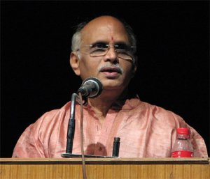 Padma's mother Lalithamba had composed about 1000 kritis on Devi. The Devi can be graceful – to bless, or fearsome – to win over enemies, in vatsalya and veera aspects. Durga, Lakshmi and Saraswati embody all that is wisdom. Much before the Indus Valley civilization was the Saraswati civilization. It is not a mythical river but is flowing 150' below the earth as satellite pictures reveal. Saraswati civilization was responsible for entire Bharatavarsha (India). She gave definition of Bharata - Bha is beejakshara for Brahman, a person enjoying the bliss of perceiving Brahman, Bharata is the man, Bharati is the woman, Bharata gave us Natya Shastra and so on. Amba is lasyapriya, layakari, sringarasampoorna, rasagnya (knowledgeable in rasa). Tagore composed "Basanthi" inspired by Dikshitar's "Meenakshi me mudham dehi." In Natya Shastra, Bharata mentions nritta matrikas. Though Gayatri mantra evokes the sun, it is given a female embodiment. Arjuna was addressed as Bharata by Krishna in Mahabaratha. "Shakti is a link between Vaishnavism and Saivism as I've interpreted in my dance dramas," said Padma. Shatavadani Ganesh from Bangalore wrote a Sanskrit verse on Athena (Aathal in Tamil) and Padma Subrahmanyam composed the music in Slav style. She performed an excerpt from it, a verse each on Durga, Lakshmi and Saraswati and an excerpt of a karagam song from Thirunelveli in Tamilnadu. "Dance and instrumental music have all been part of our worship. That's why we find sculptures of dancers and musicians in our temples. The place where drama and dance is performed becomes the temple. There is no need to go to a temple to perform. That's why we do not wear footwear on stage," said Padma. She spoke about how the Velankanni temple attracts people of all religions, showing that the concept of the Divine Mother transcends boundaries. To conclude,