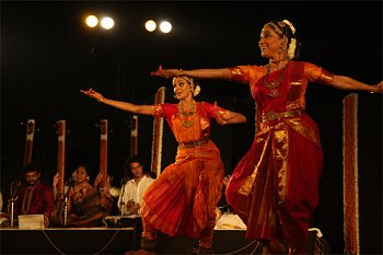 First Jayashri and Krishna rendered a Carnatic vocal recital together. The opening prayer in Lalita raga by Dikshitar in praise of Goddess Lakshmi “Hiranyamayi Lakshmi sada bhajami” they set the tone. Alternating, together and like a well tuned musical instrument, they sang together as one voice, where the notes wove a musical web and one had to close the eyes and just listen to it in complete silence and wonder. Individually both are competent, shining in their own right and have achieved a stature over the years. Coming together, they started a journey of sheer delight. Every note they rendered revealed the artistic heights Carnatic music reached in this Samyuktam. One took over from the other in a seamless manner and the effect it created was sheer bliss. Then followed in Bhairavi “Kanchi Kamakshi Amba” with crystal clear enunciation evoking the iconographic images of the Goddess that Jayashri and Krishna brought to one’s inner eye! “Bhaktajana kalpalatika karunyalaya sadaya” and the phrases ‘Shyamakrishna sahodari Shiva shankari parameshwari’ were rendered with such artistry. Was it devotion? Was it magic of pure notes? I am not a connoisseur of Carnatic music but have relished it over the years as a part of Bharatanatyam and also at times in a kutcheri when I am fortunate during the Chennai season to be with my connoisseur friend Manna Srinivasan, who gently whispers in my ears the nuances and the beauty of the music and how artistes handle the svaras! Ah, what a delight it is to be transported to such ‘rasasamadhi’! They concluded with Jayadeva’s Ashtapadi from the Gita Govinda, “Priye Charu shile” in bhajan sampradaya style and in the version in which violin maestro Lalgudi Jayaraman, Jayashiri’s guru has composed it. The rendering in raga Mukhari and Shivaranjani was flawless, and the Sanskrit text came through evoking poetic images, with such feeling that when Krishna sang “Dehi Padapallavamudaram,” one felt how could Radha not surrender when the Lord pleads in such a manner? That musically it generated such wonderful response was a triumph of the music. (I closed my eyes and saw Kelucharan Mahapatra enacting abhinaya! Who else can match their singing?) The finale came with Dandayudhapani Pillai’s ragamalika varnam. Leela began with pure dance in slow tempo which allowed her nritta to flower. Both Jayashri and Krishna sang together and alternatively for the varnam, lending an extra dimension to the musical quality of the varnam. Scintillating is the word which comes to mind to describe the nritta, pure aspect of varnam, when Priya took over. Her leaps and expansive movements were of a different school than that of Kalakshetra and the juxtaposition looked interesting. I had some uneasy feeling when the same stanza and others were taken up by Leela and Priya for abhinaya, alternatively. In their individual delineation they were superb, but to switch over from one to another visually, on the same stage, with their individual gifts, posed some problems to me for my enjoyment. In music which is aural, one listens as it is harmonious, whereas their depiction as nayika in separation in dance has differences registered on face and they arrive alternatively on stage, before those expressions sink in for appreciation. As an experiment one would enjoy, but I felt that switching over from one to another visually did not have the same impact as in the case of vocalists.