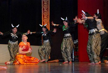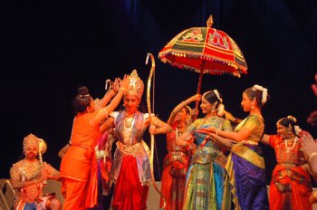 Bharatanatyam students, taking the audience through the Ramayana episodes