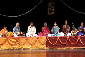 Madrimagalam Swaminathan's rhythmic support and Kunnakudi Balamuralikrishna's jathi rendition reinforced the overall laya harmony of the Geetha Nrityam concert. Bala’s sancharis describing the beauty and culture of the town of Thirupangoor and Chidamabram and Nandanar's awe of the temple were portrayed in a realistic manner. The nritta part of it was very well executed. The final piece depicted Nandanar becoming one with the Lord and concluded with the Thirunalaipovar mangalam based on Gopalakrishna Bharati's Nandanar Charitiram. The music was presented in various musical forms such as irusollaalankaram, dandakam, themangu, kadga, and anandakalipu. The presentation wove a clever dramatic structure that showcased carefully researched literature, music and nrityam. The extraordinary music ensemble and Bala Devi's captivating stage presence, technique and abinaya blended in perfect harmony and held the audience engrossed. |