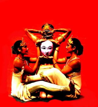 Existence, represented by five dancers with Seraikella Chhau masks supporting