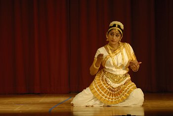 June 17, 2009 In her welcome and introduction, Smitha said: "Mohiniattam is the second and the latest addition into Indian classical dance forms from Kerala, the first being Kathakali, which is incidentally the oldest classical dance drama in Indian classical dance field. "Mohini" means "beautiful lady" and "attam" means, "dance." So literally, "Mohiniattam" means, "dance by a beautiful lady." Extremely soft, graceful and gentle movements characterize Mohiniattam. In Mohiniattam, the emphasis is on 'abhinaya' or facial expressions. Mohiniattam is deeply indebted to the constructive contributions of the three great persons, namely Swathi Thirunal, Vallathol (a great poet and founder of the institution, Kerala Kalamandalam), and Kalamandalam Kalyanikutty Amma (who is considered as "The Mother of Mohiniyattam") for its revival. Guru Kalyanikutty Amma cleared the mythical mystery behind the name of this dance form and gave it the most convincing explanation based on truth, social and historical evolution, interpreting Mohiniattam as the dance of a beautiful lady than that of a mythical enchantress from heaven."