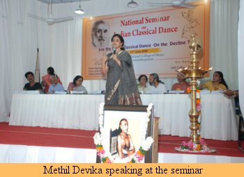On the concluding day, star performer Shobana (of Travancore Sisters family fame) performed some engaging Bharatanatyam. The audience turned out in plenty to see this star of the south, hailing from Travancore. Shobana has a fetching form and a very expressive face. A good actress, she does justice to her dance though her abhinaya is too busy to warrant focus. Guru Gopinath's son-in-law T Sasimohan, journalist, helped tirelessly to organise all events, spread over 2 months with inputs of Natanagramam director, Shri Sudarshan. Guru Gopinath remains a pioneer and on 15th July, a function is to be held at Habitat Centre in Delhi where iconic film director Shyam Benegal will receive the first copy of Attendance from Dr Karan Singh. Shashi Tharoor, MP from Trivandrum, will participate while Shanta Serbjeet Singh will introduce the evening organised by U Radhakrishna, who knew Guru Gopinath from Delhi days when he stayed there often and composed and created Ramlila of Bharatiya Kala Kendra. |