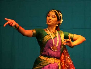 The program finale was a dance drama based on Rukminisha Vijaya. This is a devotional masterpiece in Kannada composed by Saint Vadiraja in the 15th century. Bhramari and her students presented briefly the sections leading up to the wedding of Sri Krishna and Rukmini. These included Rukmini writing a letter to Krishna expressing her love for him and pleading with him to rescue her from a forced marriage, Krishna vanquishing Shishupala, Rukmi and others who were opposed to Rukmini and Krishna's union, preparations for the wedding and the grand wedding itself. The theatrical elements in these sequences were well presented aided by recorded conversation between characters. Bhramari excelled in portraying the character of Rukmini. Her depiction of distraught Rukmini praying to Krishna was spot on. The scene where the groom's side and the bride’s side exchange playful taunts was enjoyable to watch. That a rare masterpiece was chosen as the high point of the program was appreciated by the audiences. Bhramari Shivaprakash, a disciple of Dr. Vasundhara Doraswamy and Prof. Udhyavara Madhava Acharya is an accomplished Bharatanatyam dancer from northern New Jersey. |