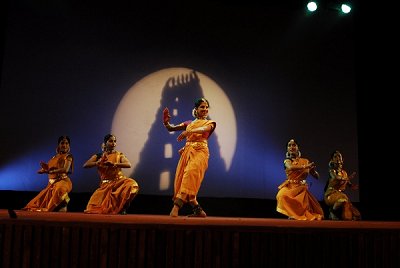 The evening's delayed start and long screenings of various voices ruined some of the impact of the function in which the students of the Kirans showcased their teacher's art. First-rate is the only word for 'Arambha,' which was such a simple idea that one wondered, why no one had done it before. Weaving in an Allarippu, were the patakas and the positions as enunciated in the Bharatanatyam teaching and shown in the morning by the Dhananjayans too. The choreography was superb and this item alone should be seen by all India, especially big festivals like Khajuraho, Konark and others. The second piece was on Tulisdas' "Main nae-hin makhan khayo" on Yashodha-Krishna. Performed ably by a mischievous looking Vidya Padmam as Krishna and serene Yashoda done by Sivaranjani, the item showed the abhinaya or emotive abilities of Kiran's students. The concluding piece was a marvellous projection of the firm foundation given by the teachers to each and every student. In all the students attempted, under the able choreography of Ramya Janakiraman (who also administered the whole event and helped make the film screened), there was proper finish and substance. The Kirans can feel proud and in turn both Padmini Ravi and the Dhananjayans should. Both were felicitated at the evening function by Sunil Kothari and yours truly.
