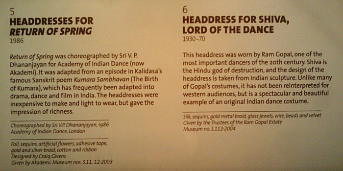 April 29, 2010 Returning to London after 25 years was happy-making! The Brits are definitely more polite and less racist than before and on the whole, the city is smiling, stress-free and simply astounding. Cultural activities are seeing a boom, and I'm not just talking about how much funding is available to the Asian community for art activity, managed by a smart Mira Kaushik of The Akademi, but generally, also in non-Asian art activity. Below reads how. A visit to V & A (Victoria and Albert Museum) in the fine and intelligent company of Neesha Radia, an ace student of Guru Pratap Pawar, who is settled in London for the last 3 decades, showed how museums ought to be. For the past 5 years, I've been working on finishing my book on Ram Gopal, so tried to look up facts and had gone in search of Ram Gopal's costumes (having heard it was donated to V & A by his trustees) and but for a crown, found nothing on display. Maybe it is all in some deep storage, as most museums cannot display all they possess but just about 10% of what they have. This aspect of museumology I learnt way back, when I worked with India's ace museum-designer Martand Singh. We did 5 museums and I worked as an associate of India's giant talent, Mapu, as he is fondly called. The 5 were: The Mehrangarh Museum in Jodhpur; Mathura Heritage; Bhubaneswar; Goa and Ahmedabad.