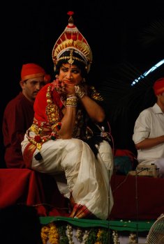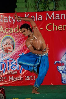 Kuchipudi celebrates - Sreelakshmy Govardhanan e-mail: shreelaxmy@yahoo.co.in April 23, 2011 Tanisha Yuva Utsav 2011 organized by the Akhila Bharata Kuchipudi Natya Kala Mandali, Kuchipudi, and Kuchipudi Art Academy, Chennai, from 14th to 21st of March 2011 at Kuchipudi Village was indeed a cultural extravaganza. Under the heedful eyes of Pasumarthy Keshav Prasad and Venkat Vempati, this 8 day long festival was held in the auspicious premises of Sri Ramalingeswara Temple. The festival was blessed with the presence of Guru Vedantam Satyanarayana Sarma for all the 8 days. His anecdotes on experiences and incidents from his glorious art life which he delivered each day left the audience spellbound. The cheerful presence of Vedantam Radheshyam throughout the festival was an added highlight. The festival witnessed some serious talents, some average performances and a few substandard performances as well. However, by the end of the festival what one would reckon for sure was the delightful air, replete with dance and music. The rest of it, who performed well and who did not, would've bothered no one. The festival held that magic! ![]() Akhila Takkallapalli, student of Guru Bala Kondala Rao commenced the festival with "Maha Ganapathim Manasa Smarami," an ideal beginning for the festival. The second performer of the inaugural day was the amazing talent from Bhubaneswar. Lingaraj Pradhan kept the audience spellbound throughout his Odissi performance. The Pallavi performed by him proved his hard work, sense of rhythm and an amazing control over body movements, while the choreographic piece on the life of Karna proved his authority in subtle abhinaya. Bharatanatyam dancer Vasanth Kiran from Bengaluru performed the Swathi Tirunal krithi "Bhavayami Raghu Ramam." The final performance of the day was "Baktha Prahlada," a Kuchipudi Yakshagana. Watching the ensemble, we realize how rich, vast and fascinating are the compositions and choreography of Yakshagana, the ancient dance-drama, authored, composed and choreographed by the illustrious souls of our great past. Executing it properly is a task in itself. Vedantam Venkatachalapathi, the promising artist from the traditional family of Kuchipudi proved truly eligible of his celebrated legacy and soared high to reach the steep expectations laid on him. He ruled the stage as Hiranyakashipu. Youngsters from the Kuchipudi village adorned the other roles of the natakam. As flag bearers to an age-old art form, they hold a huge responsibility on their shoulders that would require them to rise to fulfill a mighty task which demands tremendous dedication and hard work. Pasumarthy Rattaiah Sarma and Chinta Ravi Balakrishna acted as Sutradhars. It was amazing to watch the life and energy imparted by Pasumarthy Rattaiah Sarma to the drama through his singing, despite the frailty of his old age. The inaugural day indeed gifted the audience a rich slice of the diverse art forms of India. ![]() ![]() The second day of Tanisha Yuva Utsav commenced as a total celebration of dance from Dr. Meernanda Barthakur from Guwahati performing Sattriya. She had total control over the leaps, turns and postures she created. The final piece which portrayed the role of Yashoda trying to feed crying baby Krishna proved her ability to get into the soul of the character she played. In short, it was a genuine, emotive performance from Meernanda. The second performance was by students of Veena Murthy Vijay. Suhasini Shetty, Shama Krishna and Soorya Rao gave a neat performance representing Sri Rajarajeswari Kalaniketan Bengaluru. Among the three, remarkable was that of the youngest Suhasini Shetty who performed Brahmanjali and "Bala Kanakamaya chela" convincingly. Her feel for the art form oozed of grace throughout the performance. Shama Krishna performed a Purandaradas Kirtana in Tarangam format and Sandhya Tandavam. She had an arresting stage presence. Both items were choreographed in fast pace including Karanas and Charis. Soorya Rao performed a short version of Bhama Kalapam, indeed a beautiful looking Bhama. ![]() ![]() Mrutyunjaya, the youngest son of Pasumarthy Keshav Prasad presented Natesha Koutham followed by Annamacharya Krithi. His energy and enthusiasm was proof of his zeal when performing. The same excitement, however, made him a bit unsteady on his turns and postures amidst the rendition. The second day also had Soumya performing two items of Annamacharya and saint Thyagaraja. The next performances were by the students of Venkatachalapathi. Poojitha, the youngest participant of festival gave a neat performance and Ravali performed "Samaravaram Devam." Venkatachalapathi ended the program with Adhyatma Ramayana Kirtanam that depicts "Sita Apaharanam." The third day of the festival started with the prelims of the documentary made by Dulam Satyanarayana based on life of Vedantam Satyanarayana Sarma. The first performance of the day was by Samskriti Chatterjee from Mumbai. The artiste began the recital with "Gaja Vadana beduve" and ended with Tarangam. She was at her best in the Ashtapadi. If the artiste had imparted more energy into the performance that would have added an extra charm as she is already blessed with a graceful face. Koka Vijayalakshmy and her team presented items based on the poems of the great poet Srirangam Srinivas Rao. Giving visual interpretation to Sri Sri's poems was an appreciable effort. The next performance was by the students of Pasumarthy Srinivas. Pasumarthy Pavithra and Thotta Venketa Nirmala gave a fairly neat presentation. But one who stole the show was Pasumarthy Pavani for her beautiful rendition of the songs, especially the way she sang Kalinga Narthanam. The highlight of 16th of March was by none other than the maestro in Karnataka Eka Vyakthi Yakhshagana, Mandap Prabhakar. His skill in abhinaya appeals to connoisseurs and laymen alike. He was an embodiment of acting skills. Improvisation and the use of the stage as well as its 'premises' was wat