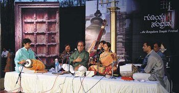 Gudiya Sambhrama: The Bengaluru Temple Festival July 12, 2011 The Bengaluru Temple Festival was organised by the Heritage Trust and was envisioned with the intent of reviving the ancient culture of Heritage spaces being centres of performing arts and learning. It also provided an opportunity for the temple going public apart from the general art followers to experience and understand the inseparable bonding between spirituality, culture and traditional arts. The temple is a creation of an open culture that recognises and understands the diversity of people's approach to the Supreme. Indian culture which sees divinity in the sacred spaces within temples stands unbroken and connected for thousands of years bringing forward time-tested practices and wisdom. The temple is a place where there is a mingling of the energy of the temple with the subtle silence in music and the stillness in dance. The event was organised in 21 heritage temple spaces ranging from a thousand years to just a decade bringing together mystical chants, the beauty of architecture, performing art, visual art, learning, spirituality, festivity and celebration. In addition to the dance and music performances there were special events like thematic Rangoli art and Dasara doll display organised during the Navaratri celebrations inclined to promote our tradition and culture. Rangoli can be termed Sacred Geometry and its practice (sadhana) was a part of a spiritual process of converting spaces into sacred environments. People experience divine and metaphysical transformations by just being around such environments. ![]() ![]() The festival started off on September 12, 2010 in Karanjee Anjeneyaswami Devasthana in the presence of His Holiness Shri Abhinava Vidhyashankara Bhartiswamy of Avani Shankara Mutt. The inaugural performances for the festival were by Chithkala Nritya Shala, Raadha Kalpa Dance Company and students of Sangeet Ashram. Cleaning and Greening campaign was flagged off by His Holiness Shri Gangadharendra Saraswati Mahaswamyji of Sri Sonda Swarnavalli Mutt in October in Malleswaram. This served as a wonderful opportunity for devotees to participate in the cleaning of sacred places and also raised the awareness of spreading greenery among the public. Sacred trees, namely the Banyan, Neem, Peepal, Palasha and Bilva were planted in many temple premises and distributed freely among the public. One of the main drives undertaken was also to ban the use of plastics in temples. Ramayana Parayana was organized in Karanji Anjaneyaswamy Devasthana in Basavanagudi to celebrate the Navarathri festival. A unique narration of the entire Ramayana was unfolded with performances by renowned artistes while the story tellers held all the episodes of different “Kandas” together. A fine-art artist painted episodes on the spot while the Rama keerthanes were sung during Sri Rama's pattabhisheka. While the Mysore Dussera celebrations were in full swing, Dussera dolls were arranged on the seven steps with dolls related to the story of Sri Krishna and were exhibited along with a beautiful rangoli on all the ten days in Govardhanagiri Devasthana of Puthige Mutt in Basavanagudi. ![]() ![]() The music and dance festival of Gudiya Sambhrama was held between 11 Feb and 19 March 2011 across 21 temples in Bengaluru. The main stage was put up at 6 of these spaces and a very special ambience was created with the temple area and structure lending itself to create an atmosphere that was serene and sacred. Around 238 artistes of repute from across India brought to the people different genres of classical dance, music, puppetry and harikatha in these spaces which are filled with history and culture. ![]() ![]() ![]() Gudiya Sambhrama had selected 21 temples which were grouped into six clusters. Apart from the main stage performances, artists also performed inside each of the 21 temples as part of the sangeetha and nrithya upachara. The highlight of Gudiya Sambhrama was the devopacharas as this practice is slowly fading away. Artistes found the devopacharas inspiring and uplifting, they have offered to dance for the devopacharas in the future. In between the programs, a short description about the temples was presented which reflected the history and architectural wonders of the temple. ![]() ![]() Heritage took all the measures to take care of the outstation artistes and their hospitality. Service apartments were booked in advance to make them comfortable and food was arranged according to their requirements. Transport was arranged for their arrival and departures and also to the program venue. Two green rooms besides performing stage in all the venues were organized to help the artists change in between the performances. All artistes including their Gurus were blessed with divine chantings by the pradhana archakas while they were given a memento and a book about temples in a cloth bag along with a medicinal plant to emphasize on the green drive and to avoid plastics. ![]() ![]() Gudiya Sambhrama concluded in Sri Venkataramana Swamy Devasthana, popularly known as Kote Devasthana in KR Market area. After the devopachara, the utsava murthy was taken on a procession around the sanctum sanctorum inside the temple premises and all the artistes and organizers joined that procession. The idols were kept decorated in front of the main stage so that all the artists accordingly dedicated their performances. Honourable Chief Minister of Karnataka Sri Yedyurappa was to preside over the festival but due to unforeseen circumstances, he could not participate. He however did send his wishes through a representative of the CM's office. Sri Govind Karjol, Honorable Minister for Kannada and Culture attended the program in spite of his busy schedule. He promised greater measure of help for the festival from his department. Sri Nandakumar, Commissioner for Religious and Temple Endowment Board, was very pleased with the festival and encouraged the initiative and assured 