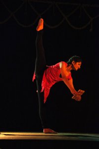 Day two commenced with ‘Aham, Thvam, Vayam’ choreographed by KB Madhusudanan and performed with an all male ensemble featuring Renjith Babu, CJ Ajeesh, LR Nidheesh Kumar, KM Jayakrishnan and MR Sreenath. Though the item was rather like a brisk, energetic thillana, there was never a dull moment and the audience showed its appreciation with frequent applause. In the last segment, the dancers danced with diyas signifying the flame of unity and the item ended dramatically in darkness lit by only the diyas. Fortunately, the lighting worked well throughout! How did this choreography evolve? “Radhika Shurajit asked me to develop a concept on unity in dance. There is normally no unity among people; the attitude must match with others or a compromise has to be made to maintain unity. Whatever the relationship, if you don’t feel internally, it won’t work. But our body parts work in unity and because of that there’s coordination and understanding between the senses and organs for the body to function well, though this varies from person to person,” said Madhusudhanan. He used padha beda, drishti beda, greeva beda, shiro beda, mandalas, utplavanas, brahmari and chari bedas, since all these in combination comes together as dance. Music was taken from different tracks and the whole work was put together in two months, with suggestions and help from fellow dancer friends.