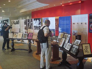 Dancing History in Dallas August 18, 2011 The opening of ICCR supported unique dance exhibition, A Century of Indian Dance through the Mohan Khokar Dance Collection, attracted over 500 visitors on the weekend of Aug 13 and 14, something unheard of as the entire dance community was there in attendance. Revathy Satyu, eminent dancer-teacher based in Dallas, running the Arathi School of Dance, was the starting point of the tour. She had seen the launch in Bangalore of Dance DISCourse and liking the idea of an all-male ensemble representing various forms, decided to host the show. Much credit is due to her for initiating this novel tour, which other cities - San Antonio, Detroit, Chicago, Houston, Phoenix, Charleston - then agreed to host too as it’s a rare opportunity to see and learn live dance history and heritage of India. Purusha, the all-male thematic dance display of costumes with devotional themes and 10 change costumes regaled audiences. President of Texas Dance Council, Dr. Linda James wrote in the Visitors Book, "In 1969, I saw my first performance of Indian dance performed by Uday Shankar’s Company! Today, I’m seeing his history on wall and in film. I am delighted you brought this marvellous exhibition and dances to us." The entire exhibition as seen in Delhi was redesigned to suit a travelling version. PVC substituted with grained canvass was used to bring out the beauty of old photos more.