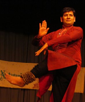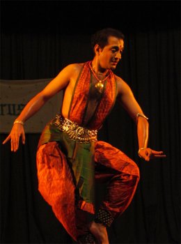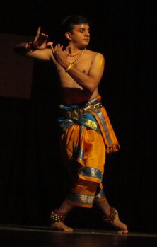 Day two took off with a group presentation by L Narendra Kumar and his Anusham ensemble, who were called in 12 days before the fest since the artiste signed on for this slot could not make it. He chose to depict different types of abhinaya. The percussionist was seated on one side of the stage, the flautist and vocalist on the other side. Starting with the melodious strains on the flute by Devarajan, angika abhinaya was portrayed through the Panchatantra story of the lion and rabbit, with Narendra having his face swathed in a bandage so as not to automatically emote with his face! Hasta abhinaya saw the dancer seated behind a screen held by 2 dancers and depicting the story only through his hand movements. The story of Vali and Sugriva was chosen for vachika abhinaya. Narendra was quite convincing as Vali and the fight sequence with Sugriva brought a flash of interest into the item. When in the throes of death after the arrow from Rama pierces him, Vali says, “You did not kill me, you killed dharma…” The lower tones of the spoken dialogues in Tamil (written by Prof. Raghuraman) were audible only to the first few rows since he did not have a body mike. The dressing up started behind a tirashila to portray aharya abhinaya. Narendra emerged from behind the screen in his dhoti costume and continued to make up his face looking into a rectangular mirror held by a dancer. Wearing the horns on his head, he then danced the Nandi chollu (words by Lalitha and Srinivasan, students of Ranganayaki Jayaraman and Suryanarayanamurthy), aided with brilliant percussion by NK Kesavan. The finale saw the satvika abhinaya rendered as a solo by Narendra to an annamacharya kriti “naanaati bratuku” sung soulfully by vocalist Srikanth. It is an interesting concept, but except for the last item, the presentation was more suited to a lec-dem and not for a full length performance. Labeled as a work in progress, the program held the audience interest only in parts and the main dancer totally overshadowed the rest of the ensemble. According to long time dance observer Ashish Khokar, “Classical dance is the art of suggestivity. Somewhere in Narendra's depiction the lokadharmi aspect took over natyadharmi. While his thinking and concept were original and refreshing, its execution by his group was lacklustre with Narendra undertaking nearly all stellar roles.” Those expecting the usual lively choreography by Narendra and his energetic young group of dancers, were rather disappointed and disjointed announcements by the compere were more a hindrance than help. Says Narendra, “People expect only fast paced items from us, so I wanted to show that I am a thinking dancer too. I love animals and always watch channels like Discovery and Animal Planet. For hasta abhinaya item, I made up my own story of a happy pair of deer in a forest. The male goes in search of food. When a lion appears on the scene, the pregnant deer hides behind a tree. When the male deer returns and sees the lion, it fears for the life of its mate and chases the lion, eventually wounding it with its fearsome horns. I saw one such incident on TV. Even in the last item, I have given a contemporary interpretation to the lyrics to convey the message of doing no harm to man or beast, not to disturb animals and to protect our forests.”