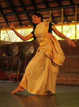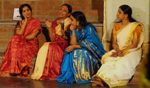 Samavesh 2011: A unique coming together of Mohiniattam practitioners - Nanditha Prabhu (Chennai) & Shruti KP (Bangalore) e-mail: prabhu.nandu@gmail.com / shruthi27@yahoo.com January 5, 2012 Like the various tributaries that meander in its own paths one day converge to become the ocean, Samavesh 2011 laid the platform for the various tributaries of the art form Mohiniattam to converge, voice their own views, share their beliefs and ideas and celebrate the art form. Young practitioners of the art form who had made a mark of their own were invited to present papers on topics of their specialization. Students, art lovers and performers present amongst the audience were equally participative and it was a joy to absorb the energy that pervaded the Spaces during the two day seminar held in the Margazhi Festival season in Chennai on 17 and 18 December 2011. The seminar witnessed talks by eminent gurus of the field: Bharati Shivaji, Dr. Neena Prasad, Vijayalakshmi, Gopika Varma, and Smitha Rajan. It also included the treat of a rare documentary on the life of dance exponent Shanta Rao. Samavesh was inaugurated at the Rabindranath hall, Kalakshetra. A quick introduction of the two day seminar was given by V R Devika, of The Aseema Trust, who co-organised the event. The documentary was the first session for the day, with a prelude by friend and biographer of Shanta Rao, Ashok Chaterjee. The audience comprised of a few students from Kalakshetra, Shanta Rao’s friends and some dancers. On the whole, the space was filled with artistic heads extremely interested in the talk and documentary. Ashok Chaterjee’s passionate prelude enlightened all about Shanta Rao as a woman, dancer, and artist. His talk included snippets from his book ‘Dances of golden Hall’ on her and was supported by the images photographed by co-author of the book, Sunil Janah. One was mesmerized by the romance of these old, rare pictures and the artist manifested on the white screen. Her dance, life and paintings all seem to be a private worship of art that was shared only with few fortunate ones while to the rest of the world she was a performer of classical dances. It was followed by a short clipping of her dancing that was documented by the international broadcast by BBC. One should thank Ashok Chaterjee as this seems to be the only treasure of Shanta Rao that is banked for future other than the photos by Sunil Janah. However, to be taken into account was the missed reaction to the clipping. Shanta Rao's dance has always been debatable and within the room of current generation there was no room for her Bamanrithyam, Mohiniattam, Kathakali, or Bharatanatyam. They hardly looked similar to what has been practiced now. Friends looked fondly, learners guffawed critically, and artistes watched objectively. The reason to open the seminar with a documentary specifically on Shanta Rao was to throw light on the first of Mohiniattam dancers and to show the journey of Mohiniattam. An incredible journey that has polished the movements and can never be called ‘the poor cousin’ of any other classical art. Mohiniattam has at last, after much work of artistes and connoisseurs developed its own individual streak. In the evening, the venue was shifted to Chandralekha’s Spaces: a comfortable place for a discourse. Shereen, the bubbly, enthusiastic youngster was the moderator and as she introduced and invited the speakers, her voice reached out to the Samavesh arena with contagious energy. The first talk was by Guru Smitha Rajan on the three aspects of abhinaya and the works of Guru Kalyanikutty Amma, her grandmother and guru. She demonstrated different sets of basic adavus as an intro to her lecture/discourse. Smitha Rajan spoke of Kalyanikutty Amma’s contributions to Mohiniattam. In her lecture demonstration she spoke of the scientific structure, adavus, kritis that ‘the mother of Mohiniattam’ had codified and choreographed. She also spoke of how genres of dance piece like Saptam can have contemporary themes and still stay within the rules for which she cited her own production ‘Jhansi Ki Rani’ as an example. She is a great guru who cleverly weaves the contemporary without harming any aspect of tradition.