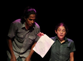 The play, opening to edgy music punctuated with the taps of an ancient typewriter, played live by the three or four performers who are barely revealed under the dim red light, progresses with briskness as the performers march forward, clanking and assembling metal pieces that quickly turn out to be the bare minimum property used throughout the entire play – two metal desks and stools. The assembling of stage property in front of the audience, maintaining a mechanical manner, provides an intimate space of interaction with the audience, yet sparks off a certain sense of consternation among the audience. Then, with the same efficiency, clinical precision and dead-pan faces, the team draw the contour of a body – a corpse – on the floor and one of the actors places herself within the lines. ![]() Then, as suddenly as the music changes, a silence begins to pervade and the play as such, begins. We realise that what we were witnessing so far was the preparation of the performance space. There are only two actors – Actor I and Actor II, who transform at first into a Medical Student and a Corpse, and an Office Worker I and Office Worker II. What follows is a discourse on dream and reality, of oppression and escape, of monotony and change, presented through vigorous physical acting. The whole play is a fine sample of physical theatre that makes use of the actor’s body as the prime tool of expression. Body itself becomes the subject often. ![]() At the end of a dizzying circle, the play returns to where it began. Actor II, in a perfect reversal of her frenetic opening movements, slowly returns to the contour of the corpse on the floor. It is darkness, and silence. The play is bi-lingual, oscillating between Malayalam and English. A wide range of sounds and noises, mostly mechanical like the taps of the typewriter or the ticking of the clock are weaved into the background score alongwith the music instruments and vocal singing, creating a strange and unsettling soundscape. The acting by Martin and Valeria is powerful and physical, often on the point of bursting with a restrained energy, especially the corpse-like convulsive movements of Valeria. The costume and property are minimal and precise, with scenic design by Usman Parudur, a young visual artist. With most of the team members having known and worked together with each other for years, there is a smooth and seamless flow of communication, imparting a flowing energy to the whole process. Of course, the energy levels vary from production to production, as could be expected of any theatre work and the three performances that I’d watched during the past one year (the last one was in August 2012 in Kochi), differed much on the energy levels and dynamics. This is a play that keeps changing and evolving. Perhaps that’s what gives rise to the magic of theatre, isn’t it? Renu Ramanath is a writer and columnist based in Kochi. She has covered art and culture extensively for The Hindu as a Staff Reporter in the Kochi bureau from 1996, writing reviews and features in The Hindu Friday Review and Sunday Magazine. Currently she edits Art Concerns, an online journal for contemporary Indian art. |