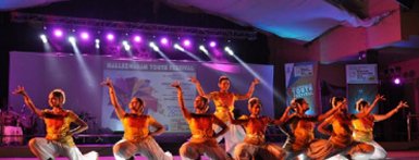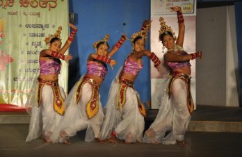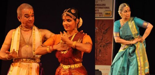 There was a lineup of 3 performances. Preethi Sunder Raj presented contemporary dance ‘3 Lines’ depicting 3 short incidents of 3 different people in Bengaluru. Chhau is a traditional dance drama form prevalent in Eastern India. The complexity and fascination of this tradition lies in the fact that it represents the folk classical continuum. Gopal Prasad Dubey presented 3 dance numbers featuring colourful masks, costumes and graceful movements. The divine love and affection of Radha and Krishna was the theme of the dance. Another number depicted the beauty of the night with the moon and the stars shimmering, making this earth a beautiful planet. The third performance was the Sri Lankan Kandyan Dance. The vibrant dancers from Sri Lanka lit the stage with wonderful movements and synchronization. September 22 The second day festivities at Freedom Park continued with great cheer as rainy weather gave way to sunshine. Vibrant and melodious voice of folk singers Vijay Kumar Jithuri and Rajguru Hoskote was presented by theatre artist Nagaraj. Both artistes rendered some rustic yet melodious numbers which had great philosophical meaning in our fast paced modern life. The audience joined in by clapping and cheering. The composition of Shishunala Sharifa on Durga was the concluding number welcoming the goddess for the ensuing Mysore Dussera. The second half of the evening had Sri Lankan dancers dressed as damsels enticing the audience to a grand rhapsody. They presented 5 dance numbers each one bringing out the essence of the Sri Lankan culture and ethos. They started with Pooja dance to invoke the blessings of Goddess Saraswati. ![]() Vijay Kumar Jithuri and Rajguru Hoskote ![]() Sri Lankan dancers The tradition of Sri Lanka is to pray for the well being of the community. Naanu Murai, the dance depicting this was the highlight. Next was Pathure, a folk dance with wooden flaps; they danced clapping the wooden flaps making tick- tick sounds with the fast paced rhythmic steps in perfect synchronization. The next dance showed the change in style of presentation keeping in touch with the modern times. The last one was a tribal dance by the natives in the forests of the land. The dancers were in the best of their spirits and beautiful in their colourful ethnic costumes. September 27 ![]() Dollu Kunitha by Niranjanmurthy and troupe ![]() Mysore M Nagaraj and Dr. Manjunath At Crowne Plaza Hotel lawns, there was a scintillating performance of Dollu Kunitha by Niranjanmurthy and troupe. The violin maestros Mysore M Nagaraj and Dr. Manjunath enthralled the crowd next. This was in association with Bangalore Literature Festival. The duo commenced with the customary raga Hamsadhwani and mesmerized with many lilting ragas for the audience mainly consisting of IT sector employees. September 27 BIAF 2013 saw many people at Bharatiya Vidya Bhavan for the presentation by Impulse in collaboration with British Council. The evening commenced with a program by Nrityantar, an Odissi dance school headed by Madhulita Mohapatra. Aesthetically choreographed and well presented the dance numbers by Madhulita and her student Sonalika added beauty to the entire mood. ![]() Madhulita and Sonalika ![]() Sambalpuri dance With great expectations the audience waited for the Impulse presentation. ‘Tear drops on dust’ supported by British Council, had B-boying and Kathak fusion which was fine combination with 2 male dancers from UK and Kathak dancer from India with a vibrant drummer to accompany them. There was a constant resonating sound to which the drummer played according to the steps of the dancers on stage. It was free flow of dance, where each dancer took separate turns to show their movement while the others remained on stage with minimal movements. Sambalpuri dance from Orissa which is known for its colourful and vibrant steps was performed by the girls from Nrityantar school. September 28 BIAF was held in Malleswaram Grounds which was filled with young crowd on Saturday evening for the Malleswaram Youth Festival in association with Dr. C N Ashwath Narayan Foundation. The festival commenced with dance by Shraddha Dance Centre of Shama Krishna. After this fine performance, Drishti Dance Ensemble performed four different items by the students of Anuradha Vikrant. The coordination of the dancers was commendable. Then the colleges impressed with their creative steps. Govt First Grade College, KLE College, Mount Carmel College, MES College, Ammani College, Ramaiah Medical College presented fusion dance, contemporary dance, fashion show with energy and zeal. The grand finale was the show by Praveen D Rao with Yuvagni, the troupe with many young artistes. They first sang a folk song Chaluvayya chaluvo, a kolattam based song. There was also a special song on Jog Falls interspersed with the song on Maha Ganapathim. ![]() Shraddha Dance Centre ![]() Drishti Dance Ensemble