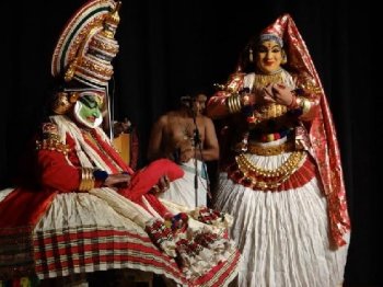 Kathakali Sandhya: Dakshayagam - Swetha Krishnan e-mail: krissweths@gmail.com Photos courtesy: Reshmi Nair Ghosh March 9, 2014 The Indiranagar Sangeetha Sabha, Bangalore, saw a Kathakali evening on Feb 23, 2014 presented by Kalamandalam Gopi ashan and team. A three hour dance performance is akin to a test match nowadays but the performance by the vocalists, percussionists and the dancers really held the evening together. The evening started with the customary invocations, a percussion set and vocals. Vocal by Pathiyoor Sankaran Kutty and Kalanilayam Rajeevan indeed was a key element to enjoyment of the entire performance. Kalamandalam Krishnadas and Kalamandalam Venumohan on chenda and Kalamandalam Achuta Warrier and Kalanilayam Rakesh on maddalam were brilliant and one could have happily spent the next few hours just listening to them. The evening started with a Purapaddu which was presented differently with two male characters Rama and Krishna introducing the piece as against the customary couple. There are a few times in life when you truly witness brilliance that is born out of talent, years of experience and sheer mastery of a craft. This was once such time. Gopi ashan opened Dakshayagam as Daksha and suffice to say he was Daksha. I saw what he wanted me to see, I smiled when he smiled, I felt his pride in the child his heart adopted the moment he laid eyes on her and I felt sad for him knowing what was in store. One could have watched him all night.