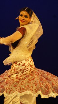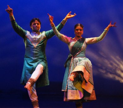 Natya Tarangini’s Bhavayami - Shveta Arora e-mail: shwetananoop@gmail.com Photos: Anoop Arora October 6, 2014 Natya Tarangini was back with a new edition of the Parampara series titled ‘Bhavayami’ - an aesthetic representation of dance, music and literature, at the Kamani auditorium on the 3rd, 4th and 5th of September. On the 2nd day, Abhimanyu and Vidha Lal (Kathak) and Ayaan Ali Khan (sarod) performed. ![]() Abhimanyu & Vidha Lal Vidha and Abhimanyu are the daughter-in-law and son of guru Geetanjali Lal and have many performances and awards to their credit. Ayaan Ali Khan is the son and disciple of Amjad Ali Khan. The evening began with Abhimanyu and Vidha doing a duet ‘Hari-Hara.’ Hari or Krishna and Hara or Shiva worship each other. But their similarities and dissimilarities are brought out by juxtaposing their attributes. One is vanshidhara (plays a flute) and the other pinakdhara (holds Shiva Dhanush). Vidha and Abhimanyu went on to do some mesmerizing nritya while elucidating the attributes of the two gods, and ended with a stance with Vidha holding a flute and Abhimanyu holding the agni (fire) and damru (small drum). Next, they presented some nritta pieces, various chalan and bandish from the Jaipur gharana, finishing with a ‘Lamchandparan.’ Both excelled in their own spaces, Vidha with her pace and chakkars and Abhimanyu with the exactitude of his footwork. ![]() Vidha Lal The following piece was a composition by the bhakta poet Raskhan in raag Meghmalhar in teen taal. Music and choreography was by Geetanjali Lal. With a tree projected in the background on the screen, Vidha danced to the bhajan “morpankha sir upardhaarihon” (He who wears a peacock feather on his head). The composition articulates the emotions of Radha, who is jealous of the flute on Krishna’s lips. While enacting the piece, Vidha portrayed the gopis going around their chores - cooking, drawing water from the well or fetching water from the Yamuna. They get distracted by the sound of the flute and go out to look for Krishna. Radha takes away his flute, imitating Krishna wearing the mormukut, and wearing the garland around her neck, but not playing on the flute. Vidha did a tukda showing Krishna stealing butter, and an attractive peacock dance in this piece. Her shoulder, neck and eye movements were compelling. Finally, they presented some more technical pieces, which Abhimanyu described aptly as running by him and spinning by Vidha. Abhimanyu exhibited immense energy, pace and rhythm with his footwork, and Vidha with her spins. They executed clockwise and anti-clockwise spins, and then it all culminated in a jugalbandi of clapping and tapping by the audience. Accompanying them were Aman Ali on tabla, Amjad Ali on vocals, Rishi Shankar Upadhaya on pakhawaj, Salim Kumar on sitar and Ahsan Ali on sarangi. Vidha said, “The abhinaya piece is one of my favourites since it was created by my guru Geetanjali Lal. Usually we have a piece in which Radha and Krishna are shown as a romantic couple or where Radha is annoyed with Krishna. But this piece has different emotions. She sees the flute as another maiden and is jealous of it. She is prepared to do anything for Krishna except let the flute touch his lips. It is a piece close to my heart since it is associated with the love of Radha and Krishna. Besides, it is the rainy season and the composition is based on raag Meghmalhar. The Delhi audience is exposed to many performances so it is difficult to please them. We chose the best of the repertoire of the Jaipur gharana. It should be crisp and appeal to the audience and should have a crescendo. Instead of doing a jugalbandi with the tabla player, we did it with the audience to connect with them.” ![]() Ayaan Ali Khan