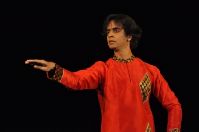 The next item was a javali “Taaru maaru” by Moovalur Pattabhiramaiah in Nattakurunji in which the narration is about a drushta nayaka who outwardly accepts his follies but inwardly has no sense of remorse. Praveen brilliantly portrayed the nayaka trying to woo his sullen lover and how despite his attempts to romance her, she is cold and indifferent. All his tricks and entreaties to sweet talk her, his attempts to cajole her by describing her beauty fails totally. The hero’s expressions on being rebuffed and his shock at finding how his beloved has changed over the years and is now wise to his games were a treat to watch. It was next Kathak dancer BP Sweekruth’s turn to dazzle the audience with his 3 items and 3 different changes of attire, all beautiful and pleasing to the eye. He commenced with a Ganesh vandana by Tulsidas “Gaayiye Ganapathi jaga vandana” in raag Mishra Maand, teen taal composed by Samanvitha Sharma who also lent her voice along with Ganesh Desai. The item ended with poor Ganesha drowning in the water after a ceremonial immersion! In Madhurashtakam of Vallabhacharya, Sweekruth showed the love and devotion for lord Krishna from an adorable child, the mother’s vatsalya bhava to an enchanting youth and the play of raas. The recording with Pt Birju Maharaj’s singing was a real treat to the ears. The final item Teen Taal was a pure nritta piece and included thaat, tihai, tukda, paran and chakkars. This item also had music by Birju Maharaj and Sweekruth’s presentation was compact with nothing overdone. All items were choreographed by him. ![]() BP Sweekruth ![]() Nrutyayan ensemble The seven dancers of Bhubaneswar based Nrutyayan trained by Guru Durga Charan Ranbir rounded off the evening’s program with their energetic performance. The first was Aditya Archana in praise of the sun god, who arises from the primordial waters riding a chariot drawn by 7 horses, and as the giver of light and life. Starting with surya namaskaram, the slow meditative pace gradually got more and more animated with energetic dancing in beautiful formations. Surya astride his horse chariot was artistically depicted. The final item Balagopalashtakam was a prayer by blind saint poet Bilwamangala who had a divine vision of the child Krishna while being endowed with divine eyes. In reverence, he composed eight verses praising the childhood pastimes of Krishna. Stories of Krishna stealing butter and lifting the Govardana mountain were part of the lively narration. Lalitha Venkat is the content editor of www.narthaki.com |