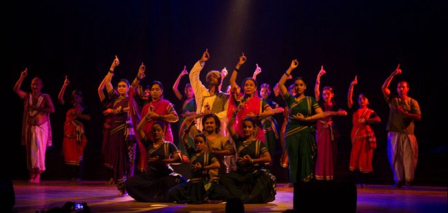 Darshana Jhaveri was the chief guest for the program held in the morning at Veer Savarkar hall. Smitalay presented ‘Uma’ based on a Marathi poem by Vasant Bapat, inspired by Kalidasa’s Kumarasambhavam. The music was composed by Late Pandit Raghunath Panigrahi and choreography by Jhelum Paranjape. It is about ‘Stree-shakti’ as embodied in Parvati - her determination to do penance to win over Shiva. Why should penance be the prerogative of men, questions the poet. The opening was spectacular. The curtains rose to show a scene of the Himalayas lit up by surreal lighting and dancers forming an Om with their bodies. Parvati is seen with her sakhis. Sage Narada enters and the story unfolds. Parvati doing penance as the seasons change is a very noteworthy scene both in terms of music, dance and lighting.The changing seasons were skillfully depicted by a group of dancers dressed in black with different colored dupattas representing different seasons. Dilip Tambe’s unwavering gaze and unhurried movements made him a powerful and dignified Shiva. He has tremendous stage presence and is able to hold the audience’s attention for a length of time. Ketaki Shetge’s portrayal of Parvati was realistic, exuding a quiet inner strength all through the performance. The Madan and Vasant dance was beautiful. A touch of humour was added by the dance of Shiva’s ganas Shringi and Bhringi. The story ends with Parvati winning over Shiva but the poet Vasant Bapat waxes eloquent about the transformative power of a woman, her creative energy and ability to inspire. This is beautifully shown in the last dance where Shiva and Parvati dance together, Parvati holds centre stage, other dancers move on the floor pointing towards her in awe. The last event of the festival, Student’s Day was held in the evening at Pranganga amphitheatre, Bhavan’s Cultural Centre. As the name suggests, students who have learnt Odissi at Smitalay were given a platform to showcase how they have used their knowledge through their students and /or choreography. The evening commenced with a mangalacharan based on the Shiv Upasanastotra, performed by students of Mitali D’souza who runs a school called Nrityavan. This was followed by a presentation by Sanatan Chakravarty’s students. He has been teaching Odissi to little children for the past three years and they are still into learning basics. So he gave them certain rhythmic patterns of Odissi and asked them to create their own pieces within that framework. He stood on stage playing the mardal. It was interesting to see his students perform their own little pieces of dance. His second group of students were seasoned contemporary dancers from The World Dance Centre, but have just begun learning Odissi. He played a rhythm for them and asked them to choreograph a dance in any style bringing in Odissi wherever possible. It was a fusion of dance forms. Hemangi Pisat teaches dance to mentally challenged children, who have been learning dance from her for the past ten years. She realized that they pick up dance easily when it’s based on popular film tunes. She choreographed on a song from film Singham. Her students gave an amazingly flawless performance. Then came students of Nrityanikunj, an Odissi and Bharatanatyam school run by Ketaki Shetge and Dilip Tambe. Their students did a jugalbandi piece in Bharatanatyam and Odissi called Natyautpati. This story is taken from a chapter of Natya Shastra and based on Prem Joshua’s instrumental music. Nivedita Mukherjee then performed with her students. She runs a school called Aratrika in Thane and Vashi. They performed the Shiva Panchakam in raag Patdeep and taal triputa. This was choreographed by Guru Gangadhar Pradhan. Then Zia Nath, a sufi dancer who has learnt Odissi at Smitalay did a piece called ‘sacred dances’ in which she did the sufi part while four male dancers from Smitalay did the Odissi part. It was based on sufi music from Pakistan. Then Varda and Aparna, both students of Smitalay now based in Pune, performed for shlokas in praise of Lord Vishnu and a piece on Mahishasuramardini stotra. Ankur Ballal, a senior artist of Smitalay presented his piece called Raavan. This was based on the Shiva Tandava Stotram, a very vigorous, fast paced, complicated choreography. The artists of Smitalay did full justice to it and Dilip Tambe as Ravan stole the show. It was heartwarming to see the Smitalay family together. Musicians, sound-record technicians, light-technicians, make-up artists, all were felicitated. Jhelum’s son Bunkim who has written and composed some songs for Smitalay, sang extempore requesting his mother to dance, which she did. ![]() Extempore finale Moksha As we thought that the show has now come to an end, mardal player Rohan Dahale suddenly announced that the Odissi festival had to end with Moksha, he would play and those who wanted to dance could do so. Jhelum and students of Smitalay, past and present, young and old, in saris, kurtas, skirts, danced the unplanned Moksha extempore. It was an exhilarating scene. The finale of the festival celebrating Smitalay’s silver jubilee was amazing with about 40 dancers on stage. |