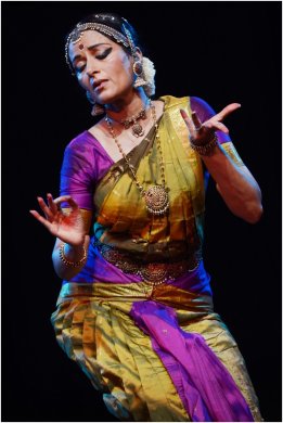 A trikalajati composed by Adyar Lakshman resounding with the word Nandi opened the invocatory piece “Nandi chollu” set in raga Vasantha and adi tala. Verses in praise of Lord Shiva embellished with brief nritta segments and sancharis of Nandi as the player of the drum and the vehicle of Siva were effectively portrayed by the artist to establish her competence. The devarnama “Jaganmohanane Krishna” was a compact delineation of the avatars of Vishnu and the pranks of little Krishna ending with a sanchari of little Krishna and Poothana who is finally liberated. The artist recalled each of the incarnations with a graphic representation of events and emotions. In the varnam “Nadhanai azhaithu va sakhiye” of Thiruveezhimalai Natarajasundaram Pillai in Khamboji and adi talam, the sthayi bhava showing the pining nayika cajoling, pleading, reprimanding and offering monetary compensation to the sakhi to be her messenger of love and bring Lord Muruga to her side was aesthetically presented. The sancharis depict the pangs of love, the feeling of separation (viraha) which is unbearable to the extent that she questions whether her lord is heartless or his heart is made of hard rock. The many moods of the nayika as she reminisces about her lord, her blushing countenance, the anguish as the arrows of Manmatha strike and the final joy of sambhogha was sensitively handled. The charanam “Nadopadesam arulvai sundaram” speaks of the greatness of Muruga. The nayika requests the sakhi to set forth and “bring that great lord to me, the one who gave the Pranava to his father, the mighty Shiva.” Muruga initiating Shiva in chanting the Pranava, and the sense of awe and pride in Shiva’s face were delightfully executed. Indu maintained a fine balance of nritta and abhinaya and the progress of the varnam was delightful in its lyrical and dance interpretation. The execution of the jathis was brisk and the adavus graceful, blending with the rhythm the dancer maintained with the nattuvangam of Prasanna and the percussion of V.R. Chandrasekhar. The Kshetrayya padam “Chudare” in ragam Sahana brought forth Indu’s flair for abhinaya. The petty gossip, tinged with jealousy and inquisitiveness about the abhisarika nayika’s liaison and complete disregard for social decorum and society’s derisions was rendered in a convincing manner. Indu then portrayed a popular light hearted Tamil folk song “Maadu meikkum Kanne” showing Yashoda cautioning Krishna not to run away and to be careful while Krishna ever eager to slip away, manages a variety of excuses. The thillanna in ragam Nalinakanti and adi talam, a composition of the violin maestro Lalgudi Jayaraman, provided a fitting finale to the performance. Orchestral support added to the overall impact of the performance - the bhava laden singing of Nandakumar Unnikrishnan supported by the mridangam expertise of V.R. Chandrasekhar, the mellifluous flute of Narsimha Murthy, the versatility of Prasanna on the nattuvangam and violin of Dr. Nataraj Murthy. With her histrionic ability and dedication, Indu Santhosh can aim to reach higher levels of excellence. The margam presented by Vidhya Subramanian on 30th January at Seva Sadan, Bangalore, had a classic finesse to everything. With a dazzling display of nritta and abhinaya in the opening sequence of a pushpanjali and the shambu natanam in salutation to lord Nataraja that followed, Vidhya charmed the audience. ![]() Vidhya Subramanian