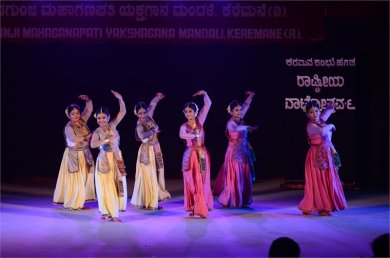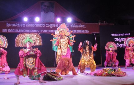 The evening saw the customary session wherein the Idagunji Mela felicitates artists, art patrons, journalists, organizers, etc., as a means to acknowledge their efforts in promoting art, a very well thought of initiative to keep the stream of art flow to the discerning audience throughout the state of Karnataka by encouraging the contributors to the art world in general. These sessions also kept the audience warmed up to receive the cultural program of the evening with eagerness. The second evening’s cultural events saw in the beginning a Bharatanatyam and Kuchipudi performance by Anuradha Vikrant, Shama Krishna and Divya Ravi of Ananya Institute, Bengaluru. Next was the much awaited natakam by the Melattur Bhagavathamelam - ‘Shri Krishna Jananam and Kamsa Vadham.’ The Melattur natakam being featured for the first time at Idagunji was led by S. Natarajan and his brother S. Kumar. The natakam with lively music and details of events leading to the birth of Shri Krishna, his growing years up to the killing of Kamsa performed with lot of verve and sincerity by all the members of the illustrious Mela from Tamilnadu went on well up to midnight. The importance of a script, rendering with a full fledged team of accompanists, props, rich costumes did speak a lot about the seriousness and bhakthi with which the Melattur Bhagavathamelam go about their natakams, akin to an offering to the almighty. February 8 ![]() Seminar on Yakshaganams ![]() Bhakta Prahlada The seminar session in the morning featured probably for the first time primary artists from all three streams of Yakshagana talk about the traditions of Karnataka Yakshagana, Kuchipudi Yakshaganam and Melattur Bhagavathamela. S. Natarajan of Melattur shared a video of ‘Prahalada Natakam’ which is performed only at the precincts of the temple at Melattur, that too during the annual festival of the temple. He also explained how the natakam is structured and enacted by the Mela for the past couple of centuries in the recorded history of the Mela. Tadepalli Satyanarayana Sarma of Kuchipudi Bhagavathamelam spoke eloquently about Kuchipudi Yakshaganam and demonstrated with the assistance of one of the present Kuchipudi Yakshaganam’s stalwart, Vedantam Venkatanagachalapathi Rao to the music of D.S.V. Sastry, an exponent of Kuchipudi Yakshaganam sangeetha sampradayam. The participants of the seminar were more enlightened about Yakshaganam at the end of this presentation. R. Sridhar of Panchamavedam Foundation, Bengaluru, implored the three streams of Yakshaganam to come together to take proactive steps to preserve, promote and propagate the Yakshaganam tradition by having the same listed as an Intangible Cultural Heritage (ICH) of our country under UNESCO. In the transitional stage of any community based ICH like Yakshagana, the need is for ensuring documentation, various socio and economic welfare measures for the sustainability and economic viability of the art and artists, cultural and heritage tourism for propagation and promotion. This initiative which requires the active participation of all the stake holders were brought out lucidly in the informative presentation, though a lot needs to be done in this regard. Dr. M. Prabhakar Joshi, a Yakshagana scholar and writer from Mangalore, spoke about the current situation of Karnataka Yakshagana, and also welcomed the proposal for ICH jointly by the three Yakshagana streams. After the teaser of the evening’s Kuchipudi Yakshaganam ‘Bhakta Prahlada’ shown in the demonstration of the morning seminar on ‘Traditions of Yakshaganam,’ the high level of expectation from the audience for a wholesome entertaining evening was very much evident. They were not disappointed as the performance of the youngsters of the Kuchipudi Bhagavathamelam which has a recorded history dating back to several centuries was really exhilarating. The very well known Narasimha avatar was dealt with lot of dramatic, poignant, gripping narration and above all the melodious spirited singing by D.S.V. Sastry did assist the group ably led by Vedanatam Venkatanagachalapathy Rao who essayed the role of King Hiranyakasipu to a nicety which was thoroughly enjoyed by both the elders and youngsters in the audience. ![]() Sattriya performance ![]() Karthaveeryarjuna Kalaga This was followed by a Sattriya dance recital by Sattriya Kendra of SNA, Guwahati, Assam. The Sattriya dance evolved from the Ankiya nat Bhaona, the Vaishnava theatre introduced by saint Srimanta Sankaradeva with both vigorous and graceful component of dance was later pursued and practiced as part of various prayer services in the Sattra institutions. The first item was Krishna Vandana with Sutradhari dance in Suhai and Dhanasri raag set to ek and rakta taal. This was followed with a Jhumura dance, abhinaya in Bargeet and Chali dance, a lasya section of the Sattriya tradition. The theme of bringing together all the three streams of Yakshaganam for the benefit of the audience to appreciate their similarities as well as uniqueness was complete with the presentation of Karnataka Yakshagana (Badagu tittu) ‘Karthaveeryarjuna Kalaga’ by Sri Idagunji Mahaganapati Yakshagana Mandali, Keremane, featuring Chittani Ramachandra Hegde and Shivananda Hegde. It was watched by the Sunday evening crowd with delight, savouring each and every moment of the Yakshagana which went beyond midnight as is wont when it comes to Yakshagana plays. February 9 ![]() Seminar on Sattriya ![]() Suma Sudhindra and group ![]() Vyjayanthi Kashi & Prateeksha Kashi The evening’s cultural event saw for the first time during the festival, music recitals. Dr. Suma Sudhindra, Bengaluru and her group’s veena recital was followed by Kabir Gayan by Shri Prahlada Tiphaniya, Bhopal. Dr. Suma Sudhindra’s recital featured a couple of Saint Thyagaraja’s compositions, namely Samaja Vara Gamana in Hindolam ragam set to adi tala and Manav Alakinchara in Nalinakanta ragam set to adi tala which wer