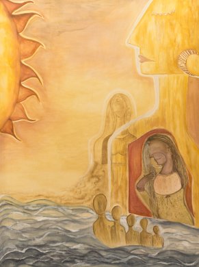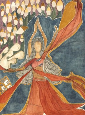 Pratidhwani: Echoes of Mahabharata voices through two art forms - Dr. S. D. Desai e-mail: sureshmrudula@gmail.com March 18, 2015 The significance of the values the Mahabharata characters represent fascinate practitioners of literature, performing arts and fine arts across time. A young painter, who has held many exhibitions of her works in Ahmedabad and Mumbai, and a reputed Kathak dancing couple, along with their four well-trained disciples, came together with their insights into six such major characters of the epic, five of them female, expressing them through their respective arts in Pratidhwani - an Echo of Virtues on Canvas. They express sentiments characteristic of the humans of this earth through the choices they have made in their art forms. Ruby Jagrut has done ten paintings in natural dyes, whose origin in antiquity goes back to the cradle of our civilization. And in these soft earthy colours, she chooses symbolic suggestions rather than two-dimensional realism. This lends character to her work. The portrayals do not lose the epic stature and universal appeal, each so good it could be on the cover of a book on the life story of the respective character. Ruby spent three years reading the epic, in her words, almost in a ‘meditative mood’ studying ten of its characters - the situations they were in from time to time, the crucial circumstance in their lives and their dominant emotion during it. It is this central circumstance and emotion that have been their identifying traits registered in the minds of the masses all through the years. While the ten portrayals were put on display for seven days at the gallery of the Hussain Gufa on March 10, by way of inauguration Kathak dancers Maulik Shah and Ishira Parikh-Shah with Namrata, Jigna, Raina and Kadam portrayed six of them. It wasn’t the strictly traditional Kathak format that they employed. The limitation of a little over six minutes they accepted for each portrayal, the full presentation being a curtain-raiser to the exhibition, became their strength. They lived up to the expectation and were economical and compact even while they symbolically combined dance, drama and choreography. While the painter subtly echoed the dominant emotions of the characters, the dancers identified those emotions, gave them a context and perspective and through the convenience of their medium, re-echoing them they established them as part of life. ![]() Draupadi ![]() In rehearsal In the painting, Draupadi emerges in the dark as she is being disrobed, trying to protect her honour, symbolized by a faint vermillion mark on her forehead. The relative composure that comes through her raised praying hands shows the power of her character and the loose long flowing hair besides reminding the viewer of her vow reflects her sensuous beauty as well. The faceless male faces in the Sabha (did they all turn white?), including the five with heads held low, and the dice reveal the context. Modern interpretation In the dance the focus remains, and the spectators’ eyes transfixed, on Draupadi’s face, which red with controlled rage inescapably expresses humiliation besides the anguish of a woman in such state and her dheer-gambheer demeanour her distinctive personality. Ishira as Draupadi significantly through a glimpse of aamad shows her silent reproach to those dumb in the event of values getting demeaned. The reassuring moment is in her hands raised in prayer with the ringing single word Narayana repeated. Even as the moving Sudarshana Chakra on Krishna’s steady tarjani appears from the right wing, in a noteworthy modern interpretation, two girls, representing as it were a conscientious society, enter and wrap Draupadi up properly. There is an interesting depiction of the bust of Hidimba in ‘close-up’ with an elongated nose, large rolling eyes, curved broad lips and a big round vermillion mark - an Amazonian young giantess but a woman nevertheless with flowers reflecting her tender feminine feelings. On the stage, the tallest (also the thinnest) of the dancing girls Jigna takes long strides with alacrity and is given higher levels to jump onto. In the empathy extended to her, one is reminded of the modern attitude to individuals normally looked down upon in society. According to the epic story, she had the mighty Bhima enamoured of her. With a slender figure of the dancer, clenched teeth and pouncing claws of the character, well-established in collective memory, were better left to the imagination of the viewers, particularly when a tender aspect of her being is sought to be projected. ![]() Hidimba ![]() Kunti Kunti’s unspeakable guilt of having had an illegitimate son Karna, her first offspring, and having floated him away to his fate, which haunted her all through life, is writ large on the face of her image within the larger image of a ‘respectable’ mother of the Pandavas, whom she sees in flowing water too unanchored before the battle. The underlying irony of the opening of the performance with aadityaay namah cannot be missed that the universal source of life and energy has become the cause of remorse for Kunti, enhanced with music (Neeraj; Nishant-Jignesh). The agonizing conflict the mother faces gets highlighted with the Ginati aavartan of ek-do-teen-chaar-paanch and ek. Echoes frozen, re-echoed ![]() Amba All human sentiments are said to be depicted in the Mahabharata. A beautiful princess, Amba on finding her love repulsed both by Shalva and Bheeshma, with no consideration for her, lets loose her passion to avenge humiliation. Though born again as a girl, Drupad’s daughter in the next birth, through tapasya she grows into a gallant warrior Shikhandi and has his (read her) revenge against Bheeshma in the battle. The two diametrically opposite qualities are presented in contrasting colours in the painting and through a visual narrative on stage. In both, the strength of the character of Amba, whom readers tend to relegate to the bac