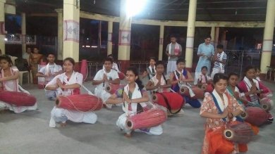Sattriya and Khol playing workshop at Tezpur - Jintu Sarma e-mail: jsarma88@gmail.com August 6, 2015 Saptaswa…the rays of performing art is a socio-cultural organization of Tezpur, Assam, a city of cultural repute, the land of Jyotiprasad Agarwala, Bishnu Prashad Rabha and Phani Sarma. The founder of the organization is Dr. Pratibha Sharma, a Sattriya artiste trained under eminent dancing genius Guru Jatin Goswami. For the better growth and expansion of Sattriya and other Indian classical dances, Saptaswa is playing a key role in Assam. Every year, Saptaswa celebrates World Dance Day with its national level program called Nrityakalpa. Though Indian classical dance is famous globally, many children are deprived of the facility to learn the classical dances despite their immense talent and interest. Keeping this in mind, Saptaswa planned to organize a dance workshop in the rural areas of Tezpur. In collaboration with Tezpur Anchalik Sanaskritik Samaj and the direction of local MLA Rajen Borthakur, Saptaswa hosted a ten days Sattriya workshop along with a Khol playing workshop in Sonitpur district. This is the first time a classical dance workshop of this kind was held in Tezpur. Due to the number of participants the workshop was held in five different places of Sonitpur district - Ketekibari, Dekargaon, Milanpur Saikia Suburi and Beseria. The Khol playing workshop was placed in Komarchuburi Namghar premises. The main objective of the workshop was to provide a platform for budding talent from rural areas. The total number of participants was 230, which was beyond expectations