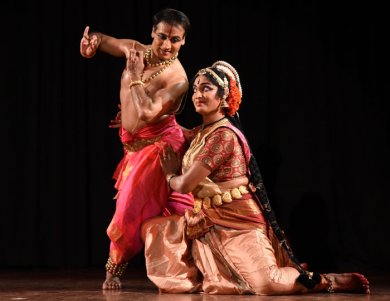Jugalbandi Dance Festival - Shveta Arora e-mail: shwetananoop@gmail.com Pics: Anoop Arora December 23, 2015 India International Centre and art consultant Usha RK presented Jugalbandi Dance Festival at IIC, New Delhi, on the 19th and 20th of November 2015. ![]() Sathyanarayana Raju ![]() Ajay Kumar On the first evening, it was a jugalbandi between Bharatanatyam dancer Sathyanarayana Raju and Kuchipudi dancer Ajay Kumar. Sathya is the disciple of Late Guru Narmada. Ajay Kumar trained by Guru Kala Krishna and Guru Vedantam Sathyanarayana Sarma specializes in stree vesham. Jugalbandi is also about the rapport between the two dance styles and the two dancers. Abhinaya in Bharatanatyam is subtle, whereas in Kuchipudi, it is dramatic. The two differ in technicalities as well. That evening, the dancers presented Bhama Kalapam from Andhra which expresses the pining of Satyabhama, wife of Krishna, for her beloved. The role of Krishna was essayed by Sathya and that of Satyabhama by Ajay. Ajay’s aharyam, jewellery, makeup, gait, mannerisms, expressions and nuances were every bit feminine. If you didn’t know that it was a man performing, you would never have guessed. Especially the nose ring between the nostrils (besar) gave a very feminine touch to his expressions. Pravesa Daruvu of Bhama Kalapam is a self-introductory piece by Satyabhama herself. “Bhamane, Satyabhamane” where she introduces herself as the daughter of King Satrajit and the most beautiful and desirable wife of Lord Krishna, was executed by Ajay with a lot of flair. Ajay next presented Lekha, where Satyabhama writes a letter to Krishna. Hearing a flute, she is struck by pangs of separation from him. He is the nandanandan, venudhari, with feet like lotuses. Kamadeva is aiming his kusumvana (flower arrows) at her and her misery is enhanced by the cooing of the birds. She asks Madhavi to deliver the letter to Krishna. Ajay’s footwork and expressions were impressive. ![]() Sathyanarayana Raju & Ajay Kumar