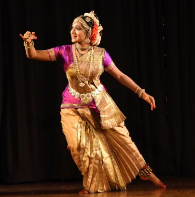 The performance began with a pushpanjali. This was followed by a kautuvam composed in khanda nadai by Arupa Lahiri and Dr. Vasudevan Iyengar. With graceful abhinaya, Arupa as Parvati explored a traditional padam - an unmarried Parvati dreams of her lord. She sees Shiva walking in a procession with matted hair, with the Ganga and the half moon on his head, but she also reminisces about the story of her previous incarnation as Sati, and how she had immolated herself in the yagya of King Daksha. Then she goes on to describe to her sakhis how she has been waiting for him for all these years, wondering if he will accept her now. Lakshmi was at her best as she performed a Thyagaraja krithi, describing the swayamvar of Rama and Sita. King Janaka watches as his little daughter lifts the Shiv Dhanush. Lakshmi depicted Sita tying the toran, making a rangoli - ‘dharani sukumari janakarajanandini tribhuvan sundari’. The little Sita is playing with a ball which falls behind Shiva’s bow. Sita moves the bow with ease and picks her ball up. A stunned Janaka pledges that he will give his daughter in marriage only to someone who can break the Shiv Dhanush. He is surprised and in awe. The kings fail to lift the Shiv Dhanush when they come for the swayamvar. And then “Shri Raghav Raghukul Ratnadeep Rama” lifting the bow and breaking it. In Rama-Sita kalyanam, the knot is tied and the bride and the groom circumvent the sacred fire. Finally, Hari and Hara have their wives turning green with envy. In the devaranama by saint poet Purandaradasa, goddesses Parvati and Lakshmi argue with each other about the superiority of their respective husbands. Parvati, criticizing the dashavataram of Lord Vishnu, makes fun of him being a fish and a turtle, which live in water. Lakshmi counteracts by saying that Shiva lives in the funeral grounds. Vishnu as a boar lives in the muck, whereas Shiva applies ashes on his body. Vishnu is dark-skinned, and Shiva has matted locks. Vishnu is man-lion and a dwarf. Shiva has trinetra (three eyes). Vishnu is helped by monkeys in the Ramavatar, whereas Shiva is accompanied by bhoot-preta and snakes. Vishnu reclines on the snake. The Kalki avatar rides on the horse, whereas Shiva has a bull as his vehicle. The humourous argument draws to a close when Lakshmi and Parvati both realize that Hari and Hara are the same. Arupa and Lakshmi did justice to the piece. Their abhinaya, postures and jestful expressions were immaculate. The final thillana in Revathi raga was a composition of Maharajapuram Santhanam. It praises the devi as matangi, mahishasuramadini, mookambika, parashakti. The agility of the two young dancers was evident. The ensemble consisted of Jayarama Rao (nattuvangam for Kuchipudi), Shakuntala Prabhat (nattuvangam for Bharatanatyam), Satish Venkatesh (vocals), Keshavan (mridangam), Rajat Prasanna (flute), with Meeta and Govind on the lights. Shveta Arora is a blogger based in Delhi. She writes about cultural events in the capital. |