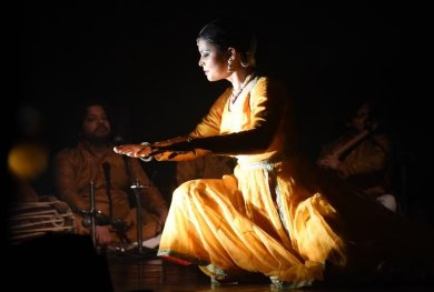 Bol, bhava, bliss - Shveta Arora e-mail: shwetananoop@gmail.com Pics: Anoop Arora February 11, 2016 On the 15th of January, Delhi was reeling under a very cold spell and the chill was a big dampener. But Gauri Diwaker’s Kathak solo, with its tremendous energy and warmth, lifted the spirits and injected some much-needed warmth into the evening with its theme. It was performed at the Shri Ram Centre. ![]() Gauri has been rated one of India’s best young talents. She has trained under Sumita Chaudhary, Pt Birju Maharaj and Jai Kishan Maharaj at the Kathak Kendra, and perfected her skills under Aditi Mangaldas. She is a dancer who has the energy of youth and the maturity of a seasoned dancer. The performance was titled ‘Hari Ho… Gati Meri’ (Hari, you are my destination), and it was based on Krishna poetry by Muslim poets. Even the invite for the performance was a work of art - the cutout of a tree in silver on an orange foreground.The art form used is Sanjhi, which originated as decorative patterns for enticing Lord Krishna. It was made of cowdung on village walls by unmarried women. It became temple art by the 19th century. This particular piece titled ‘The tree of life’ has been handcrafted by Vijay Kumar Verma from Mathura, UP. Gauri said, “When I told him that my theme was Radha and Krishna, he showed me this cutwork, which totally matched the theme of my second piece. And since Sanjhi is from Mathura, the birthplace of Krishna, it’s closer to the concept. Sanjay Nandan had curated the poetry for it. But it’s not possible to make all poetry lyrical and dance to it. So out of his research, I selected ten to fifteen of them and finally, it was Aditi didi’s (Mangaldas, the choreographer of the production) call which ones she wanted to choreograph.” Sanjay Nandan is a journalist by profession and reading Hindi poetry is his interest. About the title, he said, “The inspiration for it came from a poem by Bilgrami - Hari Ho, Hari Ho, Gati Meri. The title is a statement of the quest to submerge in the Supreme. It is the way to salvation. The concept was initiated after reading an article by C.M. Naim, a professor in the University of Columbia. He has written about Hasrat Mohani, who was a part of our Constitutional Assembly and initiated the slogan ‘Inqelab Zindabad.’ So I thought, let’s go beyond Raskhan and read about other Muslim poets who have written on the theme of Krishna. And I came across many more. Even when Sufism was not very well established in India, Muslim poets were writing about Krishna and Hinduism. All the poetry that I have explored and collected is by Muslim poets.” ![]() The entire presentation was in four parts. The first part was ‘Resonance’ based on poetry by Maulana Hazrat Mohani - “Irfan-i-ishq naam hai mere maqaam ka, haamil hoon kiske nagma-i-nai ke payaam ka, duniya-i-jaan mein shor hai jiske dawaam ka” (my destination is where there is recognition of my eternal love. I am the messenger of Him whose songs are laden with knowledge. Is the melody emerging out of Krishna’s flute beckoning to eternal life or the fount of ever increasing knowledge?). Here, the poet is talking about Krishna, who is within us and whose flute is beckoning us to the eternal truth. For this piece, Gauri wore a golden yellow kurta which was strongly reminiscent of Krishna’s pitamber. Here, she used paran, a few tukde and gat with shifting feet to depict the hearing of the flute and the effect it has on you. She finished the piece by reciting the poetry. The flute played by Kiran Kumar was so melodious that it created the true feel of the piece. This was followed by an interlude of tabla by Yogesh Gangani. The speed of his percussion and the play of the beats were mesmerizing. The next section titled ‘Shadows of Each Other’ was based on poetry by Mullick Mohammed Jayasi. The lyrics are “Mohe to he rahi anter nahi” where Krishna is telling Radha that they are not two but like shadows of each other. Krishna says that he is immersed in Radha like a drop of water in the ocean. Here, the costume change had yellow bagalbandi, like Krishna’s costume. Again, Gauri used tihai, footwork, paran and chakkars to depict the piece. As the words indicate, Krishna and Radha are two but one in soul, like a body and its shadow (pindparchhai). Gauri depicted it by alternating the faces with her hands, and showing the ornamentation of both Krishna and Radha. Next was a jugalbandi of footwork and pakhawaj, again reflecting the oneness in the two. Ashish Gangani on the pakhawaj was an excellent accompanist to Gauri’s technique. Here again, we saw the DNA of the Ganganis at work in the next generation. “Aap hi boond manahun samudra samaana” (as if I have become a drop and become one with the ocean) – here, the echo from the percussion made an excellent impact to show the drop falling. Gauri finished this piece with a stance while rotating and lifting both hands above her head, intertwining her arms and raising two fingers, giving the message of ek praan do dehi (one soul, two bodies), or the tree of life, followed by quick chakkars. The third section titled ‘One’ denotes the union of Radha and Krishna. They are both diverse - one blue, the other gold, one dynamic, the other graceful. ‘You-me, me-you, you Krishna, me Radha, me Radha, you Krishna.’ Pahichaan aapani khoyi, rayi Kanha bhayeek sanga, lag chandan hoi ekanga (Individual identities lost, Radha and Krishna are one, and having applied chandan, are of one colour). Again, Gauri’s technique was perfect and the abhinaya expressive. The interlude had hearts racing with Ashish Gangani on the pakhawaj and Mohit Gangani on the padhant. In this piece, lighting was used to create shadows in the background, sometimes many and sometimes just one huge one. The climactic piece ‘Hari Ho Gati Meri’ addressed the Almighty – ‘You reside within me while I search for you without. I hear the flute, I s