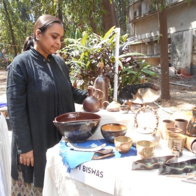 Studio Pottery in Kala Ghoda Festival - Padma Jayaraj e-mail: padmajayaraj@gmail.com February 16, 2016 The Kala Ghoda Arts Festival is a nine-day long annual event from the first Saturday of February to the second Sunday of February, in the Kala Ghoda area of South Mumbai. From its inception in 1999, the festival has grown in stature and popularity, attracting visitors and participants from all over the country. As an outsider I felt the venue to be a street mela. As I walked along, I could see the emphasis on hand-crafted wares with an eco-friendly message. Visual arts, besides children’s section and food art, are other features. The extravaganza is the promise of a cultural palate, not just for Indians beyond Mumbai but also for tourists, who flock to the venue. ![]() Pottery installation ![]() Creating a piece ![]() The iconic jar ![]() Miniature pieces Beyond the usual sights in exhibition stalls, I stumbled upon a unique setting for STUDIO POTTERY. The site showcased artifacts born of clay: from the most ancient craft to sophisticated ceramic objects and the magic of converting waste to objet d'art. The organizers give the artists a table and a small space to display their items for three days. And a number of artists, some trained, others self-taught put up their shops creating the ambience of an artists’ village. Some of the artists gave a sampling of creating an object. The thrill of creativity marked its exuberance on the faces of those who tried. FINE TERRACOTTA POTTERY displayed earthen pottery by a group hailing from the district of Bharatpur, Rajasthan. The iconic jar sat on the floor lording the miniature ones in front: an emperor of a lost world overseeing his people! It is the tallest jar that I have ever seen. It reminded me of the relics unearthed from ancient archeological sites of human settlements. A symbol of earthen pottery, it is a unique museum piece. The small assortment of earthen ware, miniature art forms meant for showcases, are beauties from the ethnic art of humanity. The group, Motilal Prajapati, Devendra Prajapatu, Tej Singh and Bhan Singh belong to the traditional artisans who are artists of the first order in tune with the ancient tradition of Indian arts. Shayonti Salvi, an artist, the product of Fine Art school, is based in Mumbai. Her pieces are ceramic ware. She has a studio where she imparts training in the art of fine pottery for students who are lovers of art and who want to pursue it seriously. Her items showcase things that people choose as home decor. ![]() Shayonti Salvi ![]() Lipi Biswas Lipi Biswas belongs to a special category of artists for whom art is their religion. Born in Thailand, she met her guru in India in 2000. She prefers to be part of a village. And she lives and works with people for whom crafting clay products is a way of life. The Asian touch in shape and style is the unique stamp of her products. I have come across many artists of many dispositions. Lipi Biswas oozes out simplicity and humility. Married to a painter from Santiniketan she is happy, living close by in a village working with and for rural folk. ![]() The best of waste From the small tables I moved to sites that showed installations. The notable one was a product made of old CDS, the best waste. Children gathered around such mega objects out of fascination for colorful beings of their fantasy world. For environmentalists it is a lesson to make beauties from cast-off useless things we call waste. The success of Kala Ghoda Arts Festival lies in giving inspiration to set up such cultural forums in other parts of Mumbai. Indeed such venues should come up in other parts of our country. Padma Jayaraj is a freelance writer on the arts. She is a regular contributor to www.narthaki.com. |