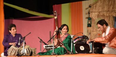 Holi memories in the Delhi summer - Shveta Arora e-mail: shwetananoop@gmail.com Pics: Anoop Arora May 4, 2016 With Delhi’s dry heat rising and its summer temperatures well into the 40s now, it seems hard to believe it was spring in the capital just three weeks ago. The India Habitat Centre’s Holi-themed event takes places annually around the time of the festival, and that spring evening had suddenly turned breezy. On March 22, the lawns had coloured cloths hanging from trees, and these colours formed a backdrop for the stage, which had a straw hut and a lamp to give it a rustic look. The bolsters on the charpoys were also coloured. But the food and drinks being offered gave the entire performance an informal air, with people passing by in front of the stage. It appeared a little unfair to the performers. The food could have waited. ![]() Vidya Shah started her vocal recital with a song on Holi, ‘Bahut dinan ke baad Shyam sang hori main khelungi, pitambar nilambar honge, aisa rang rangungi’ (I’ll play Holi with Shyam after a long wait, the blue and yellow of our clothes will be coloured by the colours). The next song was ‘Aaj galiyan mein dhoom machayi, Hori aayi re’ (Holi is here, and we will celebrate in the streets). Both songs were appropriate for capturing the spirit of the festival of colours and the playfulness associated with it. The third composition was by Amir Khusrau, and it captures the essence of Sufi philosophy, where the bhakta wants to be drenched in the colour of his pritam (beloved) or the Lord. Next was the Surdas pad, ‘Tum chalo sabaye jaaye khelat horiyan’ (Let’s all go and celebrate Holi), and it presented the spirit of Holi in Vrindavan. The next piece was replete with old world charm, a reminder of the times when the LP records were released, and as children, we would listen to Mallika Pukhraj - ‘Lo phir basant aayi’ (Spring is here again). The lyrics describe the beauty of nature in the spring and the rendition was impressive, with all the ups and downs of the music. The next composition was a dadra, ‘Kije gaman bhavan mein Vrishubhanu ki dulari’ (Radha is being requested to arrive amid the blooms of the spring). Following these was a thumri in raag Kafi, ‘Mope aiso rang jheena daro’ (throw only a little colour on me). Vidya certainly has the style to capture the hearts of the audience. This was followed by ‘Phir kabahu na hoye maili chunariya’, where the poet asks to be drenched in colours that never fade, implying the colours of bhakti. Finally, Vidya sang a chaiti with the exuberance of the Holi spirit, ‘Rangi saari gulabi chunariya re, mohe maare najariya sanwariya re’ (My lover is looking at me with love, having coloured my clothes red), wrapping up the evening with ‘Aaj biraj mein Hori re rasiya’ (It’s Holi in Vrindavan today). The audience really experienced the naughtiness and fun that is associated with the festival of Holi. ![]() Next, the Kathak Kendra presented a production titled ‘Hori dhoom machori’ (it’s the celebration of Holi). Kathak Kendra is the National Institute of Kathak Dance dedicated to promoting the practice, development and awareness of Kathak. Sushmita Ghosh is the present director of Kathak Kendra, New Delhi. The original choreography is by Pt Birju Maharaj and now the production is being restaged by the disciples of Pt Jaikishan Maharaj. The songs and compositions are originally by Bindadin Maharaj and Kavi Ratnakar. The music composition is by Pt Birju Maharaj. ![]() The narrative starts with Vrindavan, where Holi is being played by sakhas and sakhis. Radha is dressing up in her palace as she waits to play Holi. As Krishna does not appear, she is disappointed. ‘Phoolan mein, beli mein, ali mein, pik mein’ (in the flowers, vines, in the bumblebees and the cuckoos), she is looking for her beloved everywhere and in everything. Krishna, on the other hand, is caught by the sakhis and with his hands tied up, is dressed as a woman with odhni and ornaments. Radha is initially annoyed to see him like that, but finally is appeased - ‘Dekho Hori ke khilaiya kaise ban aaye’ (He who plays Holi, look at how he’s looking now). This was followed by dynamic group dances with drums called daph, dandiya, and finally, playing Holi with flowers and colors. The group choreographies were well rendered. Pandit Jaikishan Maharaj said that the dancers understand his language of dance and successfully present what he is trying to teach them. His son was dancing the part of Krishna in the production. The fun in the choreography came through in the pace of the dance. The frolic of the festival was presented by making boys dress up as girls and introducing one weird character with funny attributes, in the true tradition of raas in Vrindavan. There were a few glimpses of the lath-maar holi of Barsana. And yet, the technique of Kathak was maintained in the choreography. The performance featured senior students and graduates of Kathak Kendra. The fine team of musicians included Akhilesh Bhat and Rahul Vishwakarma (tabla), Vijay Sharma (sitar), Ghanshyam (sarangi), Vinay Prasanna (flute), Bhimsen (pakhawaj), Subhash (nagara), Mukesh Behari Sharma (sarod), Brajesh Mishra, Shampa, Priyamvada and Karuna (vocals). Shveta Arora is a blogger based in Delhi. She writes about cultural events in the capital. |