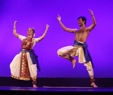 Krishna Bharatham - Lalitha Venkat e-mail: lalvenkat@yahoo.com Photos: Yoga August 23, 2016 Since 1997, Natyarangam, the dance wing of Narada Gana Sabha, has presented a thematic festival every year in Aug/Sept at the Narada Gana Sabha auditorium in Chennai. This year’s theme Krishna Bharatham (Aug 12 – 18) explored the various incarnations of Krishna through a presentation of the visionary works of great poets and composers, danced by a duo. As the resource persons are eminent scholars and experts from various disciplines, their enlightening talks on the evening’s theme before the commencing of the dance program, is usually a highlight in itself. ![]() L to R: N Gopalaswami, Saroja Vaidyanathan, Medha Hari, Praveen Kumar, M Balachander, Charukesi, PC Ramakrishna On August 12, 2016 on the inaugural evening of the festival, the following artistes were awarded - Obul Reddy Endowment Award to Bharatanatyam dancer P Praveen Kumar from Bangalore, Sudharani Raghupathy Endowment Award to mridangam artiste M Balachander, Vasanthalakshmi Narasimhachari Endowment Award for talent promotion to Bharatanatyam dancer Medha Hari. Delhi based senior Guru Saroja Vaidyanathan was honored with a purse and medal. ![]() Tanjore painting This was followed by a delightful, but rather long talk by Dr. Sudha Seshayyan on the different facets of Krishna as experienced by the Alwars (saint poets). Uniquely, all the 12 Alwars have sung something about Krishna. The Alwars not only sang about Krishna but lived his life. Kulasekhara Alwar felt close to Rama for several reasons, one being that both were born under Punarpoosam star. He transformed himself and sang as Devaki. For Andal, Krishna was everything, from the child in Vrindavan to the love of her life. Andal would rejoice in envisioning her merging with her lord. Thirumangai Alwar considered himself a parakala nayaki in his adoration of the lord. Periyalwar as Yashoda brought up Krishna. Unfortunately, the power point presentation did not work out. ![]() Uttiya Barua & Radhika Vairavelavan Radhika Vairavelavan and Uttiya Barua presented the different stages of the growing Krishna from the cradle to the butter eating episodes, lifting the Govardhana mountain, Garuda’s wings providing shade for the young Krishna when he’s tending to his cows, Andal kalyanam and finally a thillana. The light effect to denote Krishna’s parents behind prison bars is worth mentioning. Sasirekha Rammohan (nattuvangam), Jyotishmathi Sheejith (vocal), Vedakrishnaram (mridangam), Sruti Sagar (flute) and Jaya Shekar (veena) provided music support. Uttiya Barua shares his experience. “As a Bengali, Alwar was a new word for me and on Radhika’s advice, I got a book Nalayira Divyaprabandham and started reading the translation. But from where to where should I read? Radhika and Dr. Sudha Seshayyan helped me to sort it out. Then we took help from Dr. Raghuraman, put together our own ideas, Dr. Vanathy Raghuraman gave us the music and we started choreography. But so many ragas were new and the literature was very heavy for my understanding. Again we got help from Raghuraman sir for better understanding but now was the main challenge - choreography. Radhika loves to play with rhythm whereas as a Bengali, I am more into drama element, but within a few days we understood each other and our natya and natakam blended. Thanks to the challenging topic, I have learnt beautiful literature, new ragas and unusual jathis. And I have seen Lord Krishna from a different view point.” ![]() Patachitra The ‘technical glitch’ again on the second day resulted in almost a half hour being wasted while we got to see a silent film of resource person Dr. Pappu Venugopal Rao talking about the Geeta Govindam (since he was away in Manasarovar!). When it did start working, it was in fits and starts and it finally conked out after a few minutes. In those few minutes, we learnt that Jayadeva was the foremost composer in both Carnatic and Hindustani. He composed in Sanskrit and even in that, he created his own style. He wrote only 24 songs but they are so popular that all major dance styles include a Jayadeva ashtapadi in a presentation. The uniqueness of Geeta Govindam is that, Radha was an obscure character until Jayadeva made her the heroine. ![]() Shabana & BK Shafeekuddin BK Shafeekuddin and his dancer wife Shabana presented a well conceived and coordinated sequence of slokas, ashtapadis and events from Jayadeva’s life. There was never a dull moment. Starting with a brief shloka “Meghair meduram,” a pushpanjali set by Vanathy Raghuraman, an invocation to Vasudeva was followed by “Srita Kamala” performed behind a tirasheela. The first ashtapadi “Pralaya payodi jale” was about the 10 incarnations where Krishna is not an avatar but he’s supposed to be the one who has taken these avatars. “Lalita lavanga lata,” “Chandana charchita,” “Mamiyam chalita,” “Nindati chandanam,” “Yahi Madhava,” “Priye Charusheele” and “Kuru yadu Nandana” were some of the ashtapadis the duo performed to. The sakhi shows Radha that Krishna is also playing around with the gopis, Radha gets angry, sakhi conveys that to Krishna, a repentful Krishna approaches Radha, but she spurns him much to his anguish, sakhi then conveys Krishna’s anguish at the separation to Radha. Charmingly depicted was the short story of how when Jayadeva has gone for his bath, Krishna disguised as Jayadeva, himself wrote the lyrics “dehi pada pallavamudaaram” (Krishna bows down his head to the lotus feet of Radha) on the palm leaves in Padmavati’s presence, takes the prasadam prepared by her, steps outside and vanishes. When Jayadeva returns from his bath, he sees the finished line and is ecstatic that Krishna has indeed blessed him by penning what he himself had been wanting to. Radha finally relents and the pair glows in their love for each other, smoothly moving into the concluding thillana like piece on
