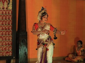. Concept, lyrics and dialogues were by Diwakara Hegde. The cast included Mantap Prabhakar as Menaka, Prashanthavardhana as Kaushika Raja / Muni, Manju Havyak as Manmatha, Narada and Kanva, Pramada Aditya as Vasantha and Prasanna Hegde as Marutha. A.P. Phatak as Bhagawata, Rajesh Acharya on mridangam and Gururaja Aithal on chande supported the recital. V.M. Aruna is a student of Bharatanatyam doing MFA at Sastra University. |