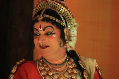 Yakshagana Moha Menaka - V.M. Aruna e-mail: arunamahendarkar@gmail.com Photos: Prabhanjana March 24, 2017 Over the years, one has watched many beautiful performances organized by the Drishti Art Foundation, both in-house and by established artists. Being an adept dancer herself, Anuradha Vikranth has organized many such events to increase the awareness towards classical dance and allied art forms. Moha Menaka, a Yakshagana play by Mantap Prabhakar Upadhya and ensemble on March 17, 2017 at the studio of Drishti Art Centre, Bangalore, was yet another brilliant addition to this garland of outstanding and memorable performances. Yakshagana is one of the oldest traditional theatrical dance forms of Karnataka. Mantap Prabhakar’s contribution to this art form has been enormous. Although Prabhakar is a pioneer for Ekavyakti Yakshagana (solo) presentation, Moha Menaka was a group performance under the directions of A. P. Phatak and Mantap Prabhakar. ![]()