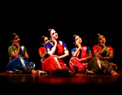 Pratibodhana (Dance awakens) displays the spiritual dimension. The saint poet Narsinh Mehta (15th century Gujarati poet) is immersed in a vision. The vision materializes as the colorful Rasalila, the epitome of the divine love repeated through centuries in mystical India: the love between Krishna and the gopikas. The ultimate truth has awakened the poet's sensibilities, ever since he started writing extensively about the love that transpired between Krishna and the Gopis. "Look at that beautiful sight in Brindavan by the banks of the river Yamuna. Krishna wearing a dancer's clothes enchants the women who come running to flock around him. He stands there in all his glory and the women embrace him like a creeper would embrace a tree... And I, Narsi, watch this stunning sight, astounded and thunderstruck." What began with the physical culminates in the spiritual. The dance recital ends with an epigram on Rasa Bhava. "Where the hand goes, the eyes go Where the eyes go, the mind goes Where the mind goes, there is expression And where there is expression, emotion is evoked..." - Nandikeswara in Abhinaya Darpana Rama Vaidyanathan who had conceived, scripted and choreographed the dance production, presents an innovative piece, aesthetically satisfying. As a group item each of her four disciples play major roles and are inseparable in a unifying design. Credit goes to each of her team: Keerthana Ravi, Shubhamani Chandrasekhar, Kavya Ganesh, Lakshmi Chakyar. The dazzling display on stage was held together by strands unseen, by a supporting team: Music composed for lyrics in Sanskrit, Tamil, Rumi's verses, Kashmiri Tantric poet and Dikshitar are by different musicians, although rendered by Ranita De, Reshika Shivakumar. Other credits include: percussion by Sumod Sreedharan, Satish Krishnamurthy, Sannidhi Vaidyanathan; flute by Rajat Prasanna, sarangi by Ghulam Ali, violin by Raghavendra Prasad. Light design is by Deepa Dharmadhikari. Vivartana was staged at Sangeetha Nataka Akademi Hall, Thrissur, on the occasion of Kerala Piravi day on November 1, 2017 hosted by SiLa Centre for Performing Arts, Thrissur. Padma Jayaraj is a freelance writer on the arts and a regular contributor to www.narthaki.com |