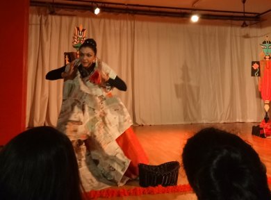 'A Million Sitas' by Dr. Anita Ratnam Kampni Kutcheri Chamber Concert Series - K Shridhar Hegde January 15, 2017 Natya Institute of Kathak and Choreography has always been known for bringing out pioneering projects in the field of dance. Recently, NIKC has launched a series of performances under the successful leadership of its current director Madhu Nataraj Kiran. Named as Kampni Kutcheri- Chamber Concert Series, it takes place once every month at the institute's dance space. Eminent musicians, dancers and theatre artists come here to perform in Kampni Kutcheri. The Kutcheri is special in many ways particularly in its traditional chamber concert like setup extended to dance and theatre. This setup establishes a unique connection between performers and spectators very similar in a way that used to happen in temple dances of the ancient times. One such occasion at 11th Kampni Kutcheri, 'A Million Sitas', a contemporary dance theatre by Dr. Anita Ratnam based on the epic story of Ramayana was to be performed that evening. The Kutcheri began with an introductory video on what NIKC is. Keerthi Kumar, project head of Natya STEM Dance Kampni, gave introduction on Kampni Kutcheri Series. Madhu Nataraj Kiran introduced the artist for the evening. ![]() As Ahalya ![]() As Manthara There were two figures on either side of the performance space. One among them was depicting Lord Rama and the other Ravana. As narrator, Anita Ratnam started with stories describing the birth of Sita. The presentation was woven around the stories of five well-known women characters of the story, namely Mandodari, Ahalya, Manthara, Surpanakha and of course Sita. Ahalya's character was portrayed using a long greyish silver cloth, pointing to her transformation into stone. Manthara, the root cause of Rama's exile, was depicted using the crushed dailies wrapped around the performer's body. Dr. Ratnam mentioned towards the end of the presentation that this particular concept was an impromptu improvisation. The narration continued to land on the act of insulting Surpanakha in a unique depiction. The performer wore a black wavy dress, long nails and a Balinese headgear. The movements were slow, steady and strong with a flavour of Kathakali and Mohiniyattam. The character ends with a shrill cry after her nose and ears get cut. ![]() Sita's story was narrated through, but she comes out as a distinct character towards the end. Sita asks Rama for her justice. The well-known "Sita kalyana vaibhogame" song was sung near Rama's ears with a tinge of sarcasm. Then Dr. Ratnam comes out in a zulu wedding costume holding a lamp in her hand. The performance ends with Sita's sorrow and the injustice she has suffered being generalized to that of the women of today's world. The performance was a solo act using recorded music. It was in a single stage setting without any entry or exit of the narrator from the stage in between the presentation. A lot of symbolism went into the performance which uncovered various facets of each character. The dance theatre was choreographed with much movement but with slow and effective build up of the characters. Music was in coherence with movements and was mainly derived from south Asian folklore fused with western drums and chords every now and then. In totality, it was more like a garland of stories of five prominent women characters, the thread being the story of Ramayana itself. In the interaction session after the performance, Dr. Ratnam mentioned that the program also has an extended version, which includes the way in which five decisions of Sita carries the Ramayana story forward. Being a researcher herself in feminist studies, Anita Ratnam beautifully brings out the subtle emotions and questions that a woman experiences in the world. K. Shridhar Hegde is doing First Diploma (choreography), NIKC, Bangalore. |