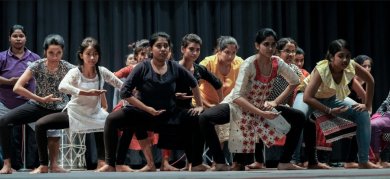 Live drums played by students of Tanmoy Bose, the Tibetan singing bowl strung by Anita Ratnam, recorded music with instruments of Kerala such as the edakka, was blended together so well, that the music lingered on even after the performance. Just like the music, the dance was also eclectic; the contact of bodies drawing from contemporary repertoires, movements based on classical dance styles and the use of ‘voice’ and sounds of feet and hands, influenced by traditions of physical theatre, were weaved in seamlessly. That such a well-blended piece with complete coordination of performers was a result of only a four day workshop is commendable. JNU academic Urmimala Sarkar summed it up, "Continuing in the ways established by Kolkata Sanved in the last few years, 'Dance for Revolution' this year had Dr. Anita Ratnam as its brand ambassador. The workshop led performance once again reaffirmed our belief in the strength of dance and the dancing body as the tool and site for changing vulnerability into strength, and fear into determination and pleasure. The beautifully articulated message was to claim rights to happiness, pleasure and decision making and work together to stop violence against women." |