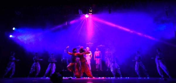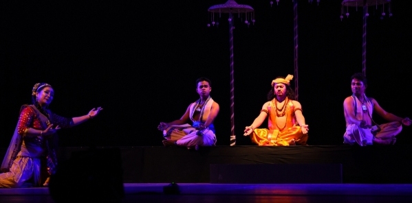 Imaginative visualization of Tagore's Chitrangada in Assamese - Dr. S.D. Desai e-mail: sureshmrudula@gmail.com April 5, 2018 Rabindranath Tagore created with his vision and lyric poetry in Bengali, the character of Chitrangada. He gave universal contemporary contours to the Chitrangada of the Mahabharata. Anjana Moyee Saikia of Darpan, Guwahati, under the direction of Abinash Sarma, brought on stage last Friday at the Theatre Olympics, Ahmedabad (Tagore Hall), that character as a flesh and blood person with a distinctive identity modern women anywhere in the world would find endearing. In Anjana's own pleasingly imaginative choreography, Chitrangada based on Madhurima Barua's Assamese adaptation is an exhilarating 80-minute visualization of the dainty original. Theatre lovers must have seen many versions of Tagore's classic work hailed as an epic. A poem does not become a mahakavi by its length. It becomes one with the poetry it is invested with, the treatment of its theme and portrayals of characters. With all these traits, Tagore's short dramatic piece has an appeal transcending time. Darpan's visual interpretation of Chitrangada has its power acquired with a sensitive depiction of its central character and creative collaborative contributions made by other elements of theatre, notably the light design (Kaushik Borbora) and the musical score along with sounds (Yachinur Rahman).