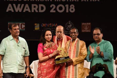 Ambi Subramaniam has earlier performed in the festival along with his eminent father violinist L Subramaniam. In his solo recital, he did his father proud by getting a standing ovation for his sensitive and spellbinding performance. He presented compositions from traditional Carnatic repertoire - "Sadaa manadil" in praise of lord Ganesha composed by his father in ragam Abhogi, a composition of Thyagaraja and one in Kapi in praise of Krishna. He was ably accompanied on the mridangam by V.V. Ramanamurthy and on morsing by Satyasai Ghantasala. When he was 16, Ambi was proclaimed the 'New King of Indian Classical Music' by the Times of India. The final evening was devoted to the award ceremony and a premiere by Srjan Repertory. The Award sponsor is National Aluminium Company (NALCO). It was indeed a starry evening as the chief guest was actress Hema Malini. This year, the jury of the OMC Guru Kelucharan Mohapatra Award Festival presented the NALCO Guru Kelucharan Mohapatra Award (with a cash prize of Rs.1 lakh to each artiste and a citation) to 84 year old Dr. Sachi Das for his contribution to the field of Theatre and Dramatics and to Guru Lingaraj Behera for his immense contribution to Odissi dance. The NALCO Guru Kelucharan Mohapatra Yuva Prativa Samman carrying a cash prize of Rs. 25,000 each, was presented to four meritorious young artistes in the area of classical dances and Odissi music for their continuous outstanding performances - Sonali Mohapatra (Bhubaneswar) and Subikash Mukherjee (Kolkata) for Odissi dance, Swati Sinha (New Delhi) for Kathak and Rohan Suresh Dahale (Mumbai) for Odissi music. For Subikash, the award was like the Bharat Ratna. Rohan said as an accompanist, he never dreamt he would get an award and for him it was like a lifetime achievement award ![]() Dr. Sachi Das ![]() Guru Lingaraj Behera