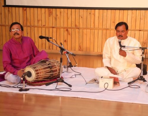 Next was a lively and insightful lec-dem by Dr. Anupama Kylash (Anubhav centre for music and dance, Hyderabad) on 'The components of music in Vilasini Natyam' with Dr. Aruna Bhikshu (HOD of Sarojini Naidu School of Arts and Communication, Univ of Hyderabad) as chair. The ancient treatises which dealt with the subject of music, whether it was the Natya Shastra, the Dattilam, or the Sangita Ratnakara, have all stressed upon the interdependency of the 'word,' 'music' and 'dance' - after all, dance is music and music is dance. In Indian dance systems, therefore, literature, music and dance are inextricably woven together. Vilasini Natyam is the art of the hereditary temple dancers of the Telugu land. The Telugu kalavantulu were trained equally in dance and music, though some became dancers and some became musicians. Anupama elaborated on the musical components of Vilasini Natyam highlighting the variations of melodic and rhythmic structures in three contexts - Alaya Sampradayam (Temple tradition), Asthana Sampradayam (Court tradition), and Ata Bhagavatham (Operatic tradition) which is about honing one's skills to present to the audience. The music of all three contexts were analyzed in three categories - Laya or rhythm centric music; music as melodic refrain; music as applied to the different genres of literature. Explaining the ragas and talas of Vilasini Natyam, Anupama said they have lots of resemblance to Kuchipudi Yakshagana sampradaya. More than a song sung, it is like a dialogue sung. Rough singing of earlier years has been made more refined in later years, with its own identity of rendering. The music applied to Vilasini Natyam, while employing a wide range of ragas and talas, pays particular attention to the subtle nuances of 'raga bhava', 'tala, kala and laya auchitya' and 'prakriti nirupana.' Anupama said some of the archaic talas have been put to use in temple rituals. These prayers are in different meters. Many of the talas in the agamas are to be found in the desi talas. Some ragas are supposed to be the favourite of certain deities, like Shankarabharanam for Shiva. Rajachoodamani tala in Malahari is used to propitiate Yama. Pallavis are seen from age old times in Telugu devadasi tradition - swara pallavi, shabda pallavi and sahitya pallavi. Anupama demonstrated shabda pallavi in raga Manirangu and a salaam daruvu. Like in Bharatanatyam, varnam even in Telugu devadasi system is the central piece. Devadasis would sing the swarams and dance the abhinaya. Music or dance was manodharma in the padabhinaya. Anupama spoke about influence of western music - they were inspired by Celtic music, harmony based music, adapted to western music scales and called Company Javalis! - followed by a demo. The accompanists were Sweta Prasad on vocal, Renuka Prasad on mridangam and KLN Murthy on violin. The vivacious presentation was summed up by Dr. Aruna Bhikshu that dancers who can sing can be thinking dancers! The super finale was 'Components of music for Kuchipudi' by the superstar of music, vocalist D.S.V. Sastry, with Manjari Sinha as chair. Since Sinha chose to speak in Hindi despite Sastry requesting her to speak in English, there was no interaction between presenter and chair. Using Dr. Anuradha Jonnalagadda as interpreter (he was more comfortable speaking in Telugu), at the outset he said that he was born in Kuchipudi village where he spent time there with the great gurus and he was sharing these experiences, ideas and thoughts from personally having engaged with the art form of Kuchipudi for more than three decades and not as a culmination of any focused scholarly study. In addition to being fluent in Carnatic music and Yakshagana sangeetham, he is trained in Kuchipudi dance and nattuvangam and is a choreographer and music composer. Sastry's presentation explored the role of music in Kuchipudi as an art form, and how the music of the form has changed from the late 19th to early 20th century to the present times. The ragas employed, their relevance and usage in various situations and the manner of exploiting a jathi or a talam to portray rasas in Kuchipudi was discussed. Sastry feels that the music of Kuchipudi is a bani by itself and has an identity of its own, despite having adopted the tenets of Carnatic music. ![]() D.S.V. Sastry and group He said Kuchipudi music is set by the dancers themselves for the sahitya. It makes the music more special as it is based on the artiste's bhava. Kuchipudi dancers are known to do lots of experimentation. The song in praise of goddess Balatripurasundari starts with Mohana, goes to Kambhoji and comes back to Mohana ragam. Such prayogas are done to make the composition more interesting and appealing. Kuchipudi is essentially performed for the audience. Being a performative art form that depicts stories from mythology, Kuchipudi's music, like its lyrics, is one of its key tools of storytelling. From the time of the kalapam to the solo, one can observe a transformation in the music, though the core remains intact. A few defining features, which could be the musical structures or jathi patterns or choice of ragas itself, that form an underlying basis for the bani of Kuchipudi music, were discussed. It is not just the corpus of ragam or talam that forms the bani, but how the selected ragam or talam are employed in the composition. The tradition that has come down to us has as its source, the kalapam, specifically the Bhamakalapam. The structure of the daruvu is the most characteristic feature of Kuchipudi, and it is from this kalapam that we derive the daruvu structure, to the extent that even the daruvus that are created today are reminiscent of the daruvus from this kalapam. Following the kalapam, the music, along with the form, was enriched greatly by the Yakshagana Pitamaha, Chinta Venkataramayya. Sastry took some examples from Bhakta Prahlada Yakshagana and demonstrated the Hiranya pravesa daruvu that has the vachika abhinaya come in-between and merge
