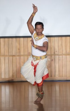 Perini is a part of Andhra Natyam. When Andhra Natyam was introduced in Telugu University, C Srinivasulu urged Nataraja Ramakrishna to add Perini to the training. How was Perini music adapted from Andhra Natyam music? In Perini, his guru mostly concentrated on rhythm and omkara, said Kalakrishna. After a demo of Kumbaharathy, Kalakrishna said after singing of churnika, the priest would give a flower to the rajanartaki. Nataraja Ramakrishna adapted from the temple tradition to the stage tradition. There was a vigorous demo of vinayaka tala (which somewhat resembles adi tala) and shows only raudra and veera rasa. From 1982 - 1995, there were lots of changes in the temple rituals. Adyatmaramayana kirtanas were developed by Saride Manikyamma who used to sit and perform them. Some jathis were added to the original temple asthana to suit the stage, said Kalakrishna. ![]() Perini demo by Perini Kumar There are specifications for placement of the musicians and dancer on stage. Tham is important like in Bharatanatyam and Kuchipudi also. There was demo of Pallavi adapted to Perini form, reconstructed by Nataraja Ramakrishna who added some jathis to it. Perini Kumar's vigorous exposition of the Perini form was proof enough that one needs to be highly physically fit for the strenuous footwork! "Nataraja Ramakrishna did not say Perini belonged to Telangana. Perini was popular in Gujarat, Bengal and Karnataka. But it was reconstructed only in the Telangana area. Till his death, Nataraja Ramakrishna struggled for both forms," stated Kalakrishna with heartfelt reverence. The reconstructed 5 elements of nature in kaivaram style was demonstrated. The dancer wears 155 bells in the left leg ghunguroos and 125 in the right leg as there is more stress on the left leg. Nataraja Ramakrishna did not touch the parijata prabanda in Perini, was suitably enacted by Kalakrishna himself. Though one is left a little confused with the details of revival of both the dance forms, its structure and music, ultimately it is an admirable fact that Nataraja Ramakrishna's hard work in reconstructing Perini brought it to the stage to be handed over to the future generation. Alekhya suitably summed up the contribution of both the gurus. "Nataraja Ramakrishna put his everything into this - music, tech, presentation has been put together with a lot of thought. What he had in mind has taken form in Kalakrishna's presentation and fructified. Kalakrishna has retained it and is trying to take it forward," she said to thunderous applause. The last day of the conclave was devoted to the music of Bharatanatyam, Sattriya, and Manipuri. In her presentation 'Music for Bharatanatyam,' Dr. Ananda Shankar Jayant traced the features and music for the items in the margam. She said, "Music for Bharatanatyam has traversed a lot since the days of the Tanjore Quartet. What we see is a beautiful progression of how a performance can be conceived and how it is received by the audience." She commenced with a little demo on Alarippu by her disciples. "This first item is brief, non textual, non rhythmic, with a little nritta and allows the body to open up. In jathiswaram, you extend the nritta a little further set to simple swara patterns, with simple adavus and talams; it is like a warming up. Shadbam in its very musicality uses simple talams and straightforward ragams. Abhinaya gets into the presentation for the first time. This becomes a bridge between the pure nritta piece jathiswaram and the next piece varnam. The expressions are padartha abhinaya and a little bit of sanchari is used. Varnam combines nritta, nritya and natya. It can be pada varnam or daru varnam. Stretching to almost an hour, it is a test for the musician as well as dancer. With kirtanam, you start winding down. The swara or tala depends on the verses used. Mostly shringara based, the winding down continues in padam. The fun element comes in the javali. Light ragas, madhya kala laya, simple poetry and simple situations are its features. The final thillana is footwork and music oriented, concluding with a slokam. The bhakti srinagara leaves you in a shantam mood. The margam has created a nice pathway," described Ananda. The items were demonstrated suitably by Ananda and her well trained disciples. ![]() Ananda Shankar Jayant Ananda moved on next to how Bharatanatyam branched out into group work and dance dramas. It began with Rukmini Devi producing the famous dance dramas of Kalakshetra and as a past student of Kalakshetra, Ananda did justice to this segment. When the Ramayana series were set to music by Mysore Vasudevacharya (music for Choodamani Pradhanam and Mahapattabhishekam were composed by his grandson S.Rajaram) and choreographed by Rukmini Devi, the story and lyrics became the margam of the storytelling. Small video excerpts were screened to aid the commentary. It was an interesting experience to see Surpanaka bhangam with its theatrics set in Saranga; how Ravana's character comes through in the way the music is set; how one can hear the hum of the bees reflected in the way music syllables are split in Choodamani Pradhanam; the beauty of the ocean, movement of the waves and how poetry, rhythm and abstraction are all put together beautifully in Lanka dahanam. ![]() Bharatanatyam demo The last segment involved Ananda's experience with her own productions. Navarasa was composed minus story or lyrics, and the dancers demonstrated a couple of rasas. Ananda said electronic instruments must be judiciously used or else it becomes jarring. The music accompaniment included S.Venumadhav on vocal, TP Balasubramanian on mridangam and Saikumar on violin. It was a neatly capsuled presentation on music for Bharatanatyam for margam, Kalakshetra's group work and her own productions. ![]() Muhikanta Bora Barbayan, Bhabananda Barbayan, Niranjan Saikia Bayan The next session was on 'Music for Sattriya' by Dr. Bhabananda Barbayan from the Uttar Kamalabari Sattra in Majuli Island, Assam. The chair, 